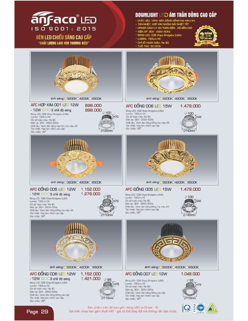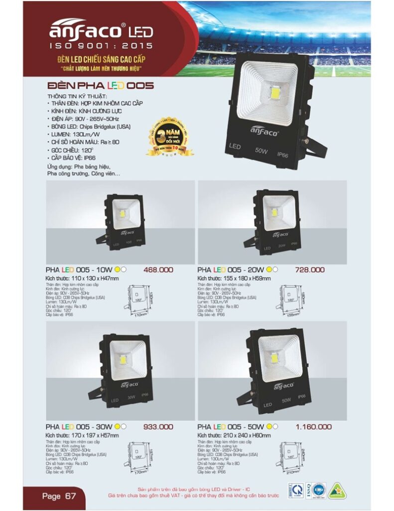 – Bảng giá đèn led Anfaco