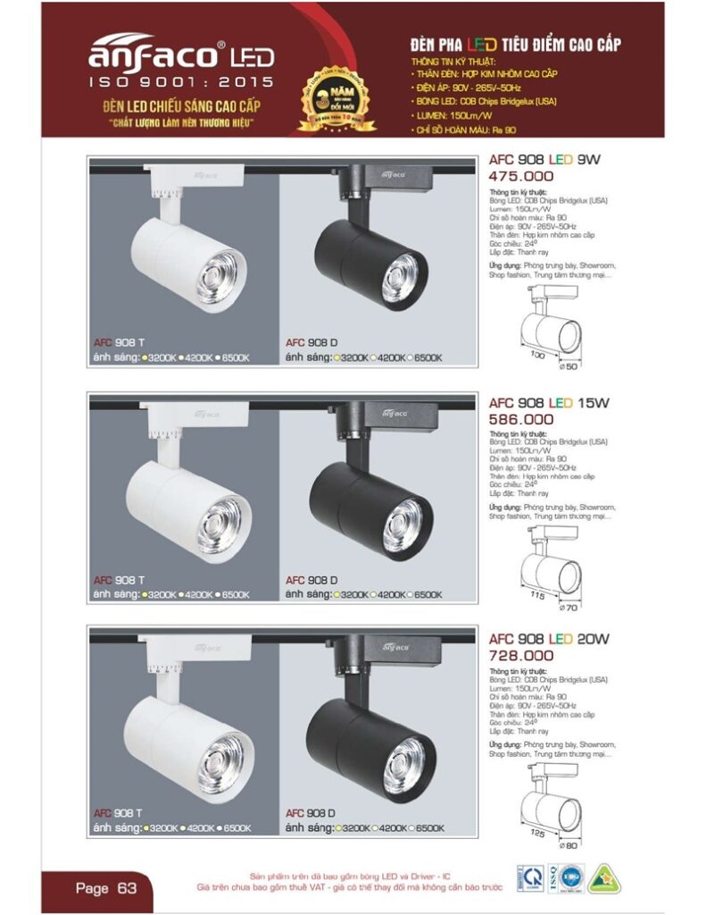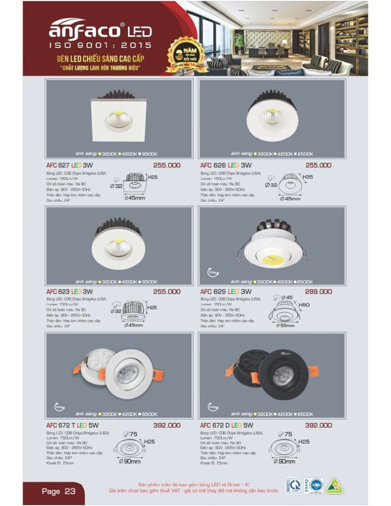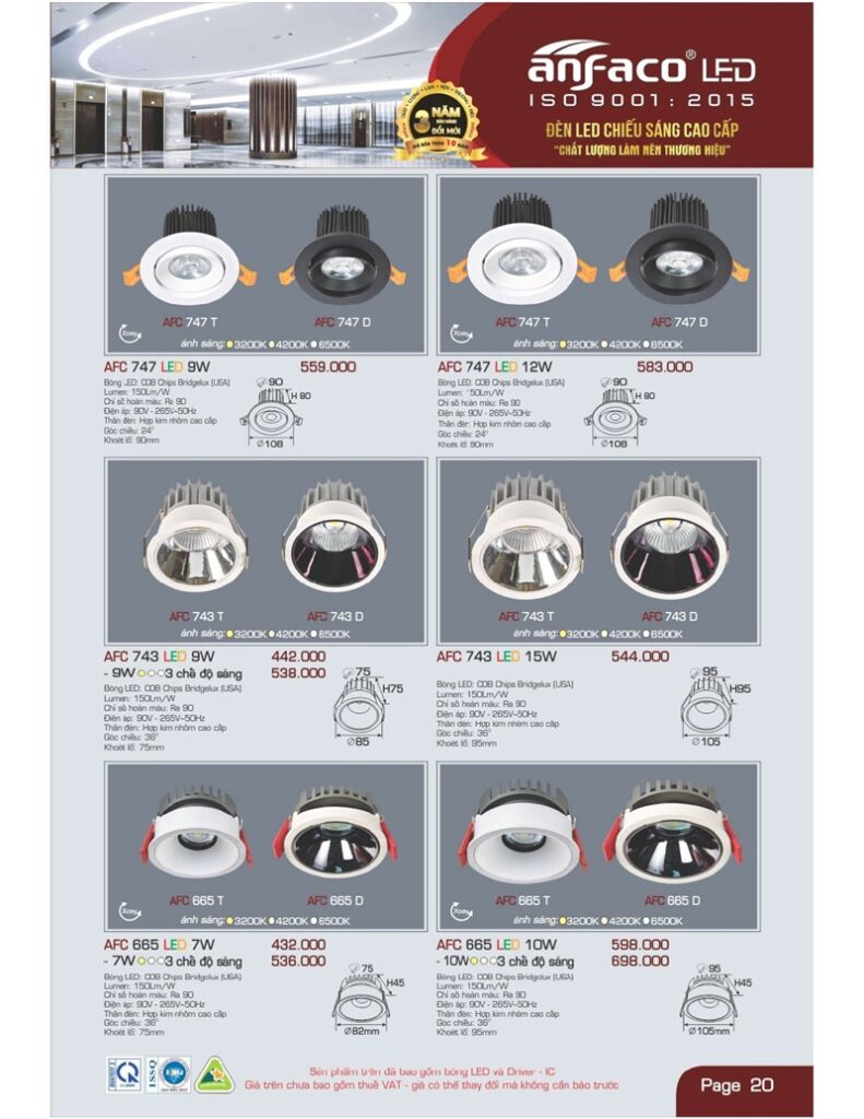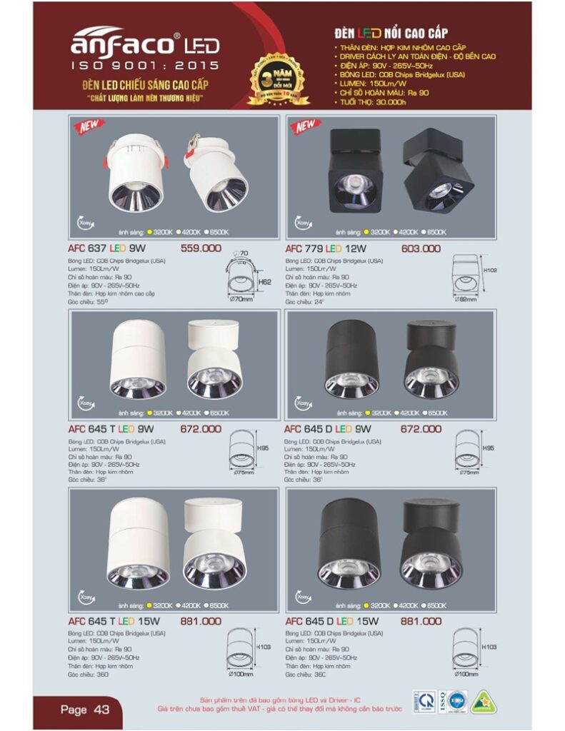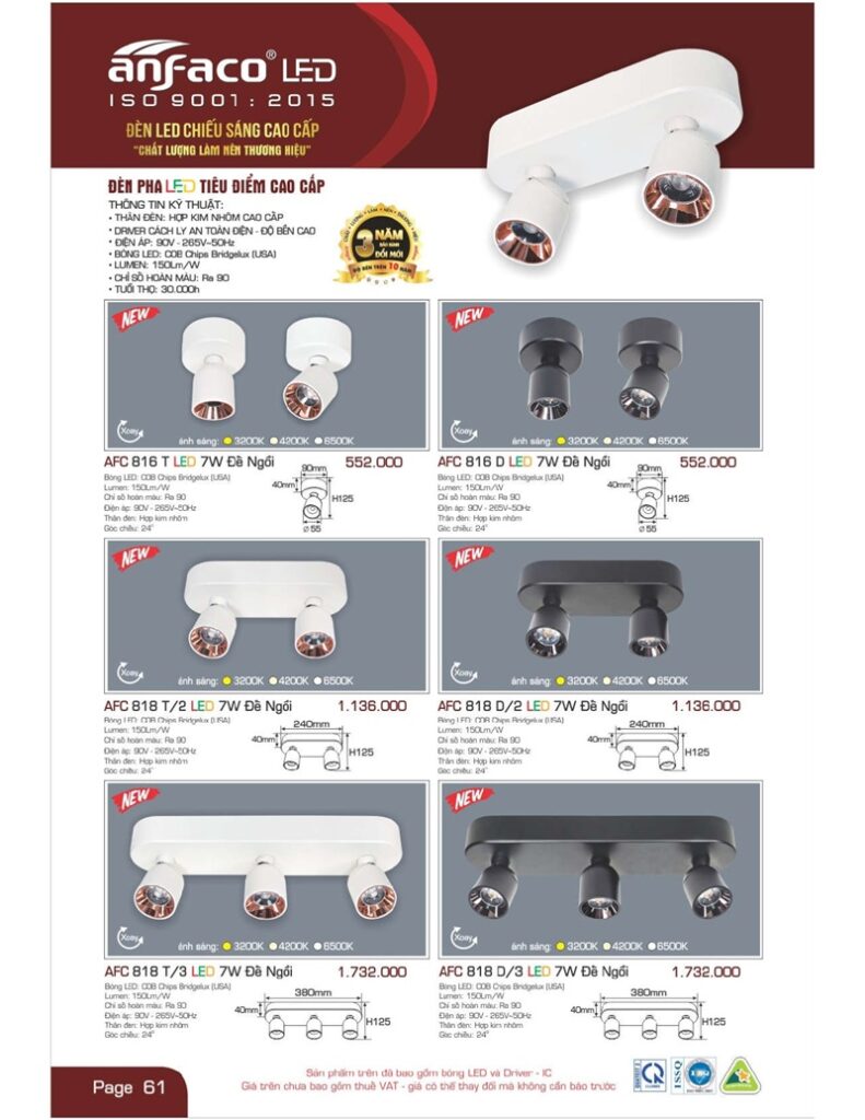 Bảng giá đèn led Anfaco hình ảnh và thông số kỹ thuật: