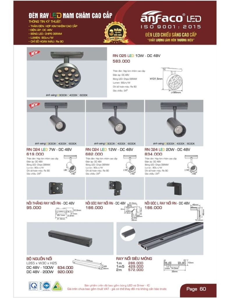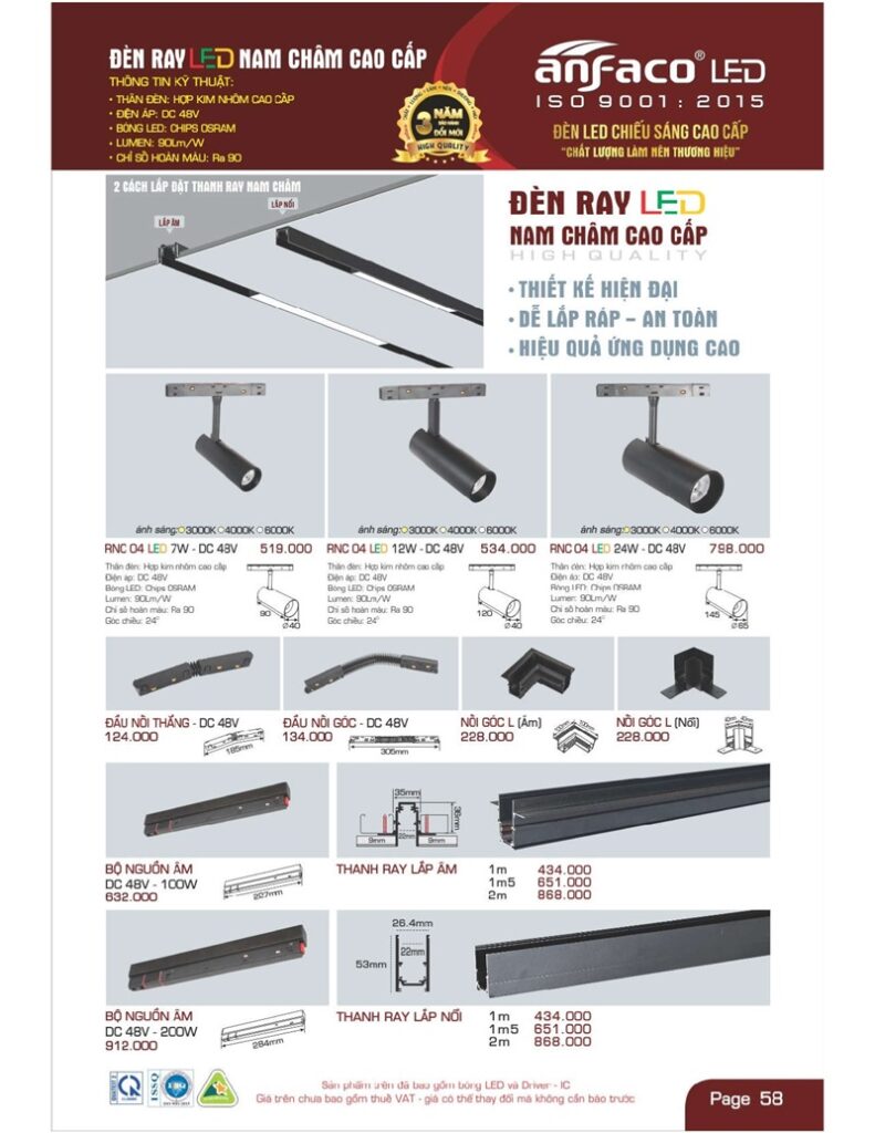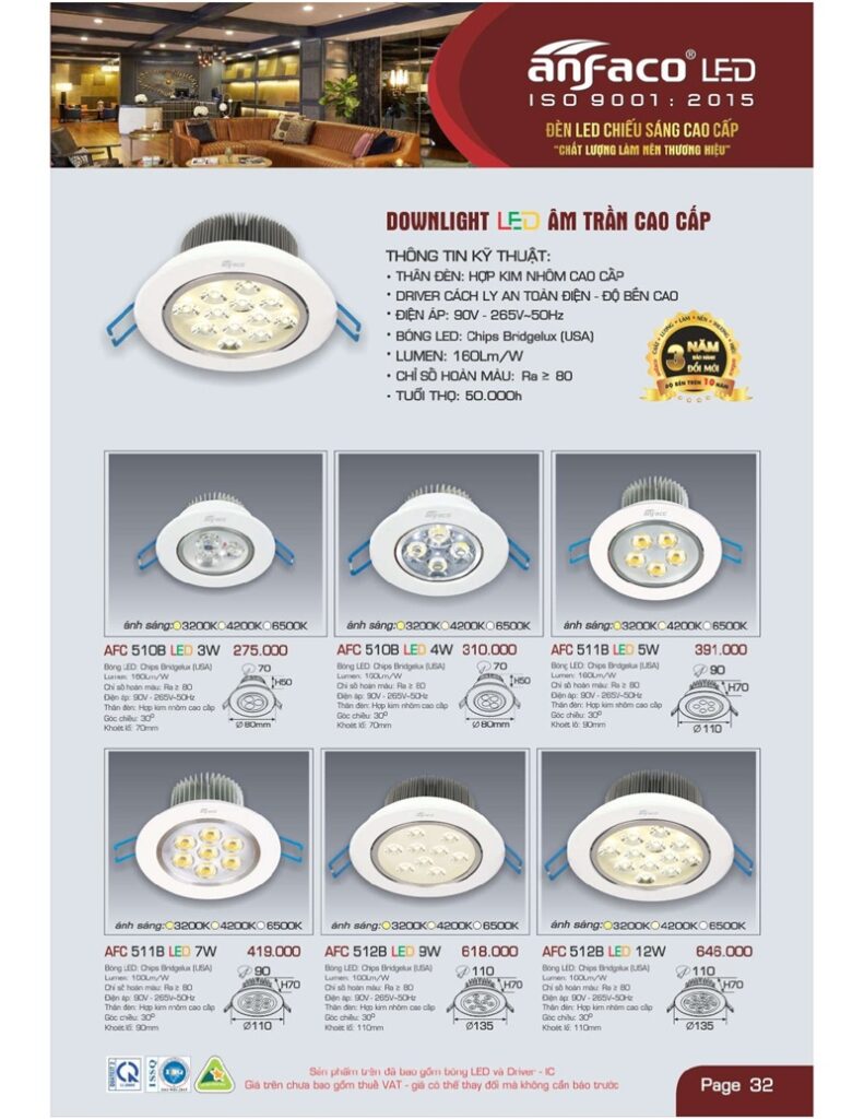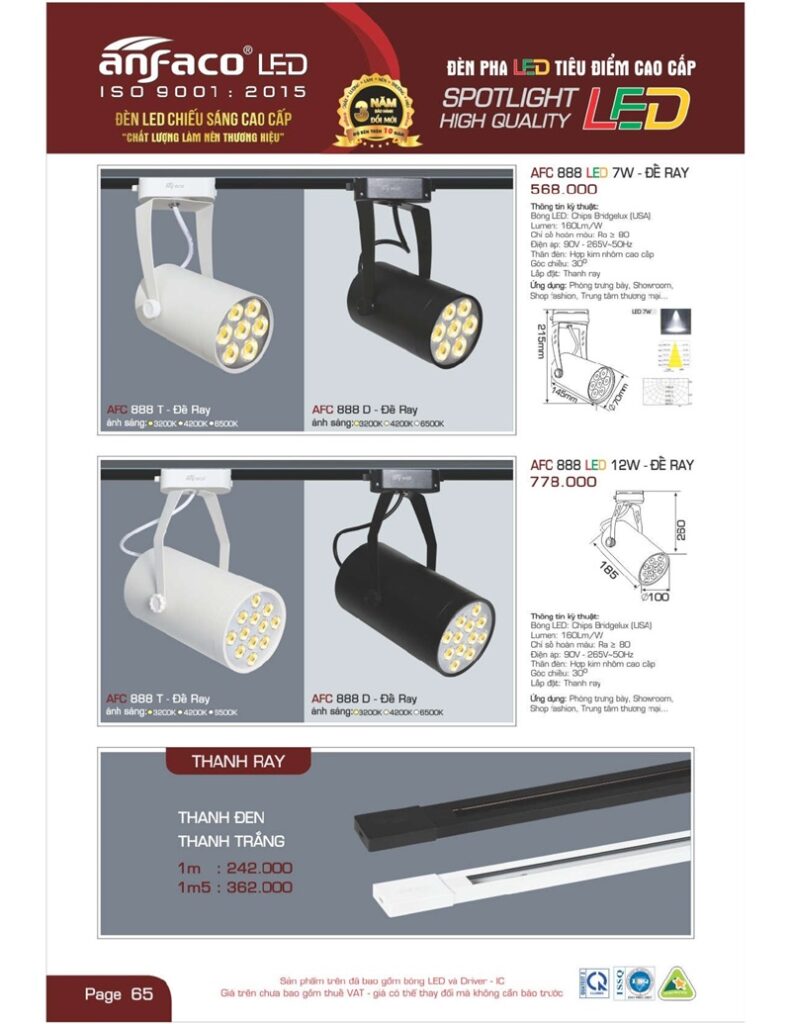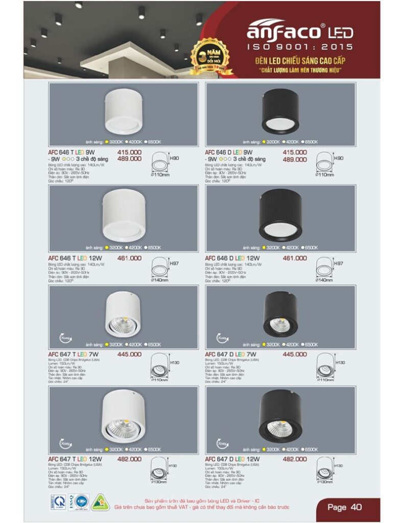 Bảng giá đèn led Anfaco hình ảnh và thông số kỹ thuật: