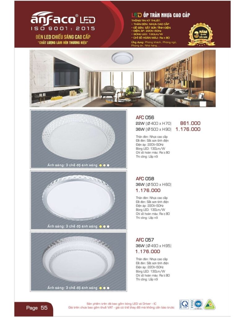 - Đa dạng sản phẩm: Anfaco cung cấp một loạt các sản phẩm đèn chất lượng cao từ đèn LED, đèn trang trí đến đèn ngoại thất.