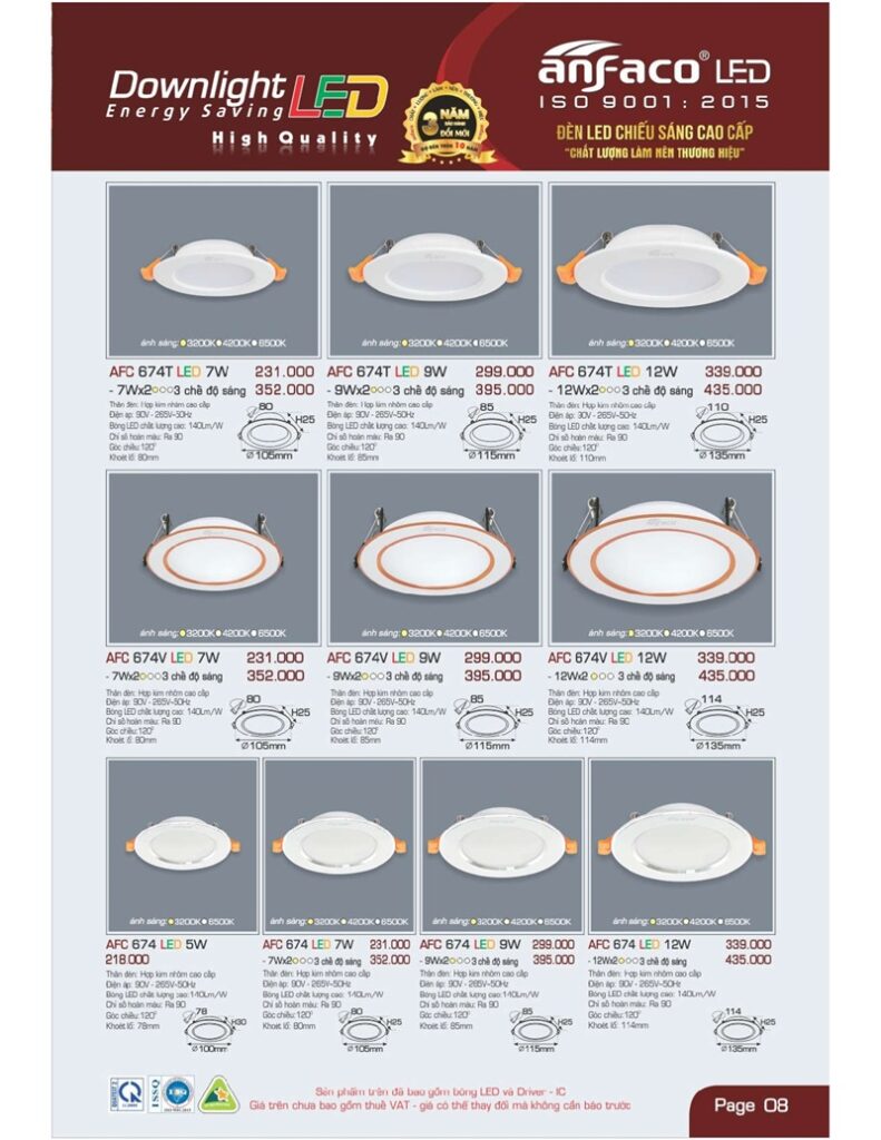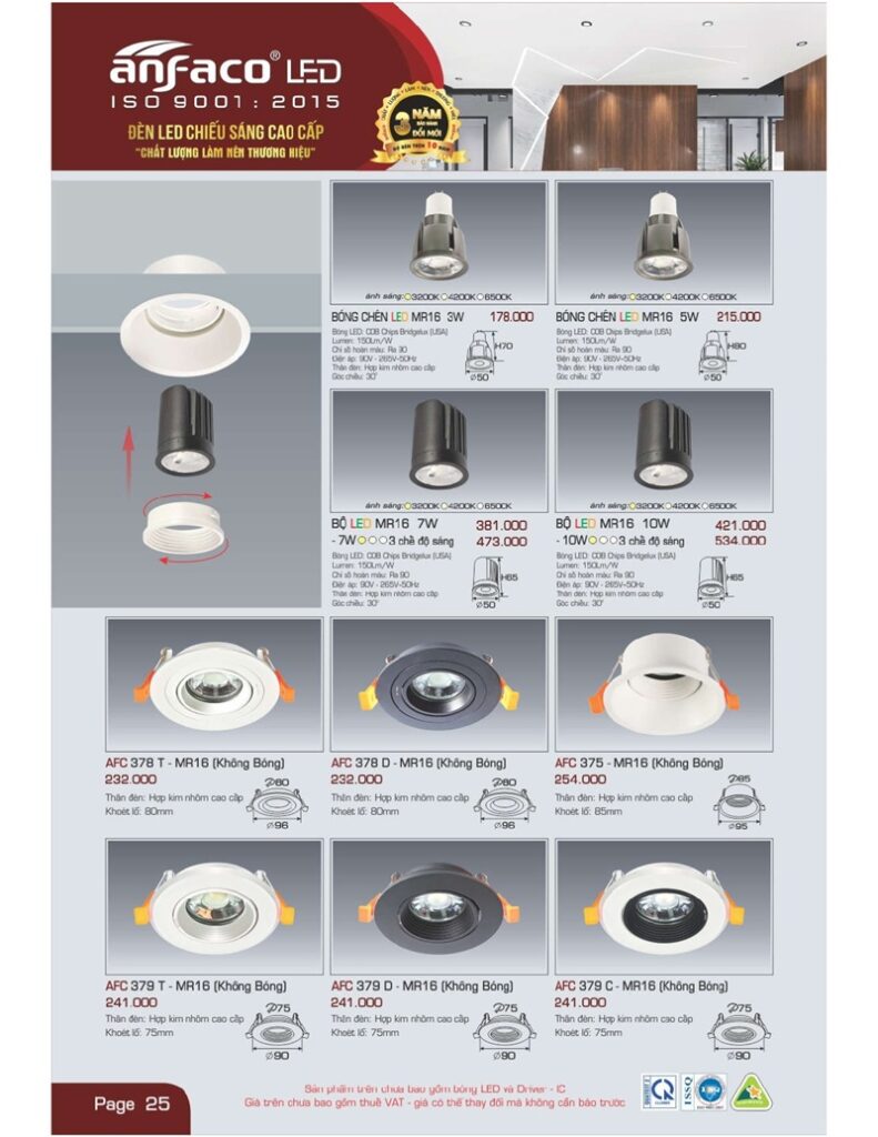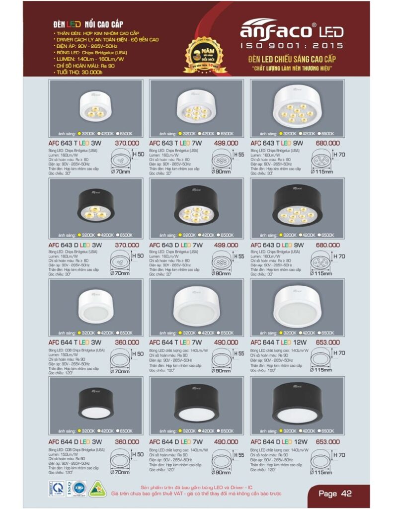 Bảng giá đèn led Anfaco mới nhất áp dụng tháng 2 2024 mới nhất TẢI FILE TẠI ĐÂY