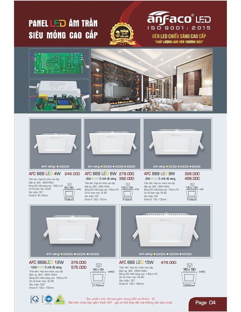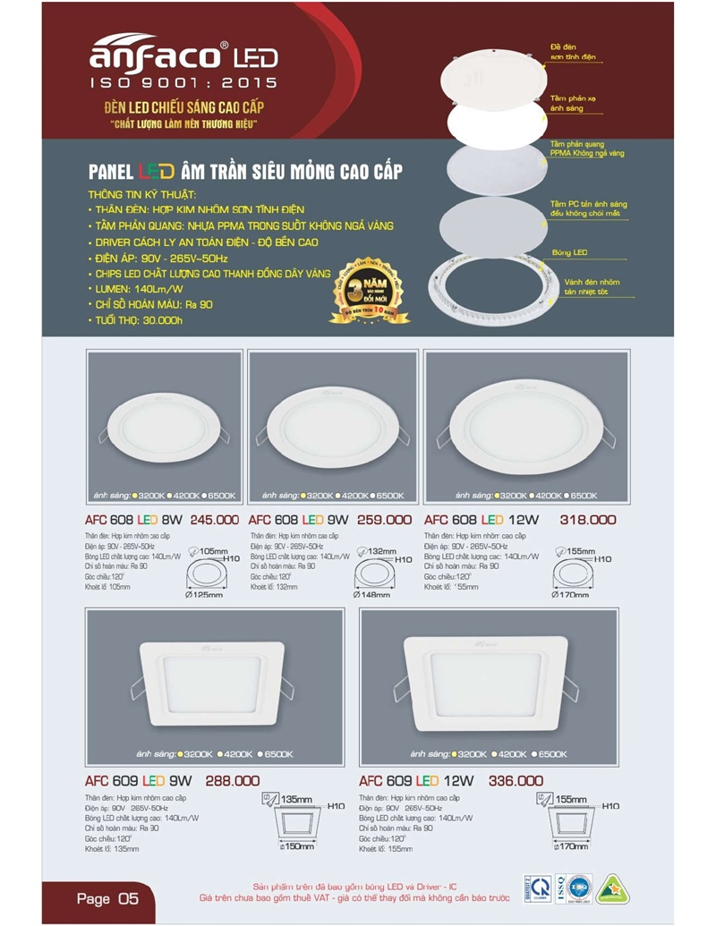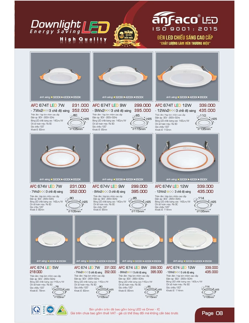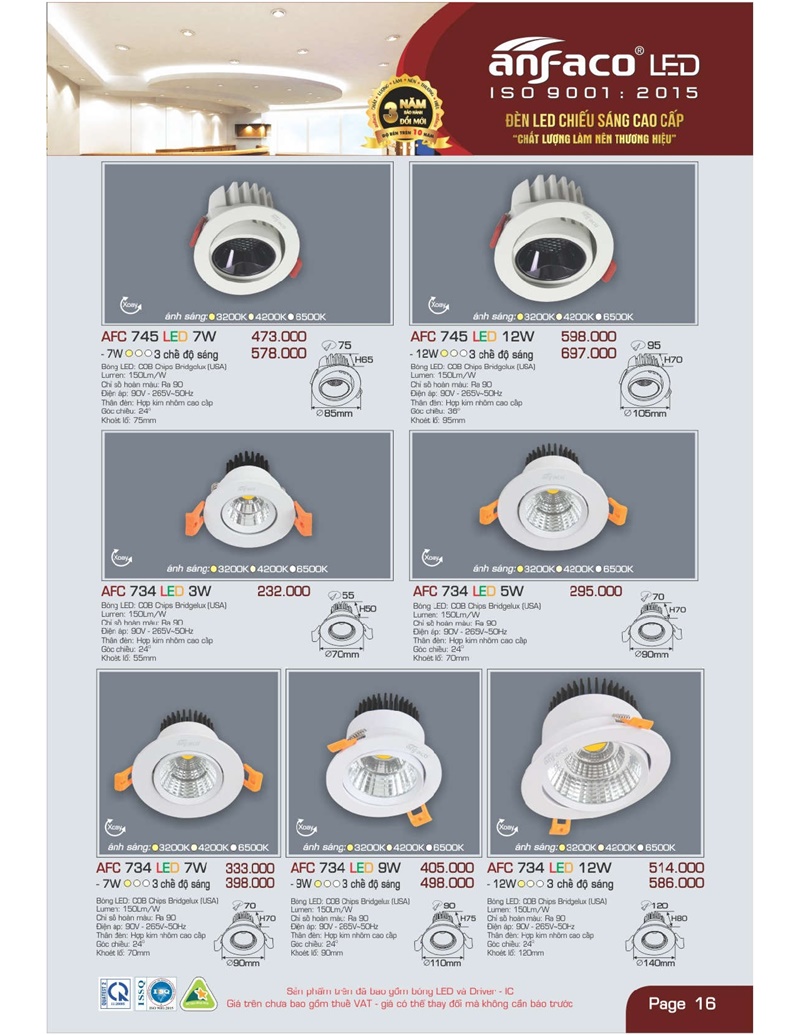 Bảng giá đèn led Anfaco hình ảnh và thông số kỹ thuật: