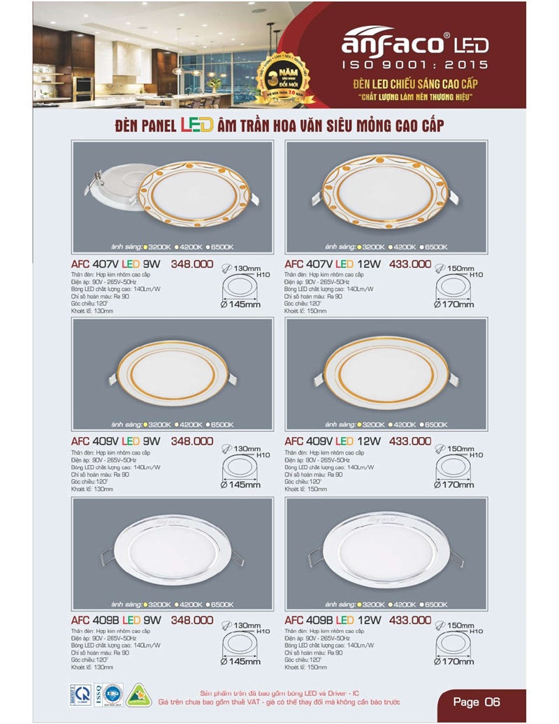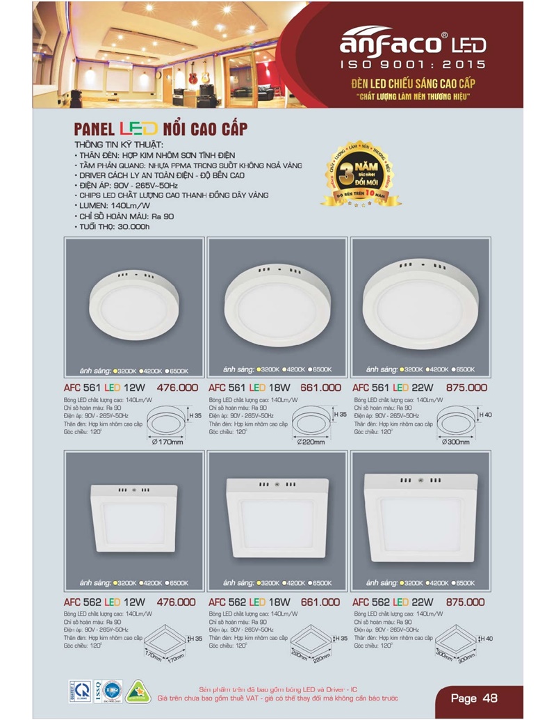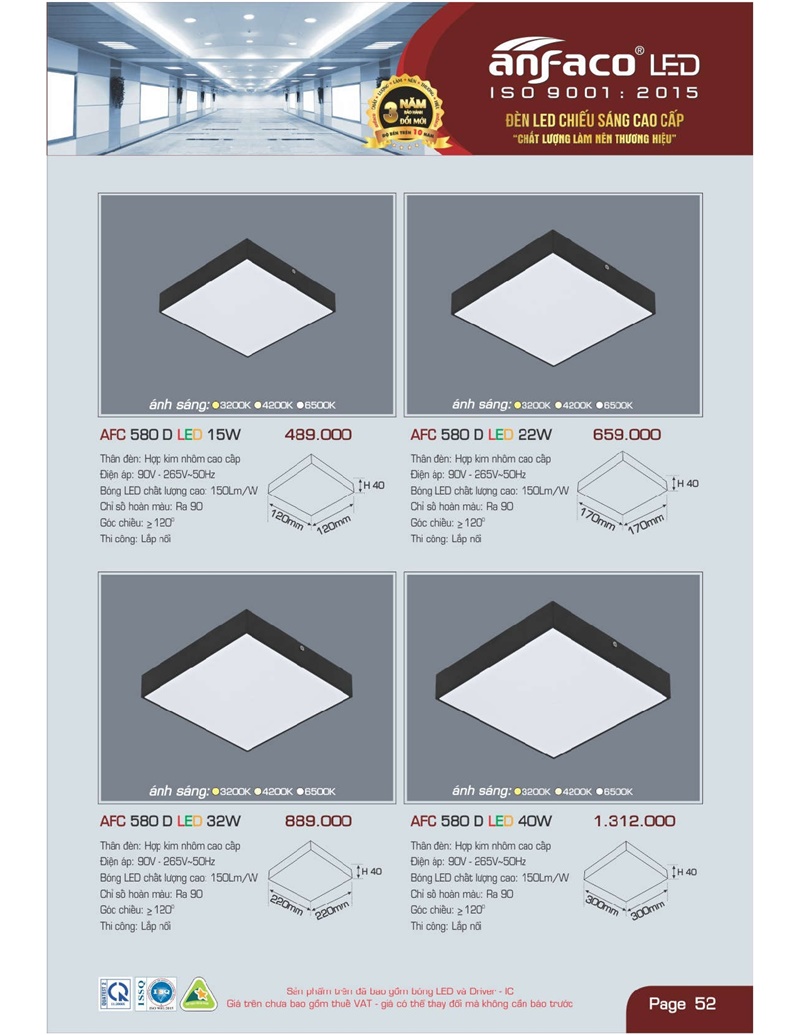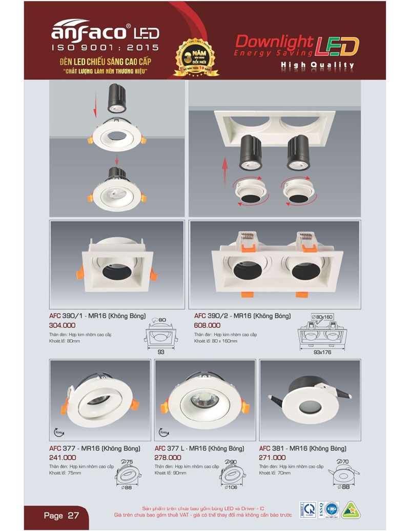 Bảng giá đèn led Anfaco hình ảnh và thông số kỹ thuật: