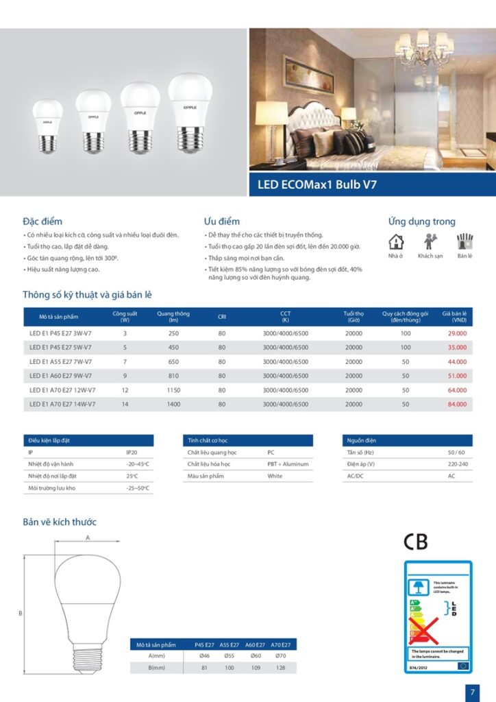 – Bảng giá đèn led Opple