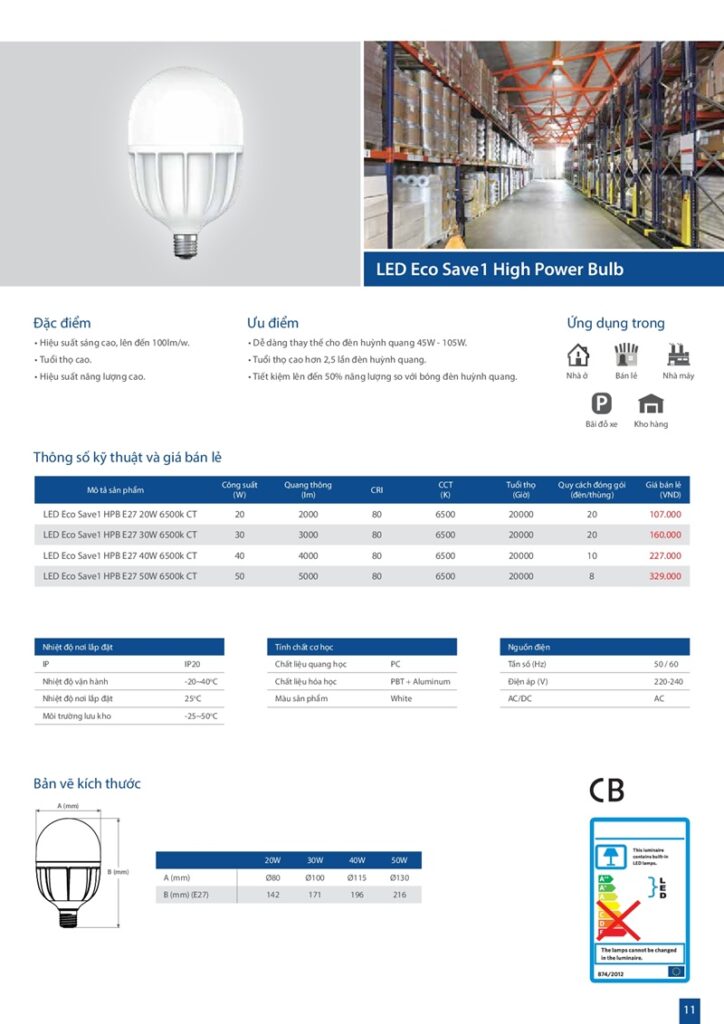 – Bảng giá đèn led Khaphaco