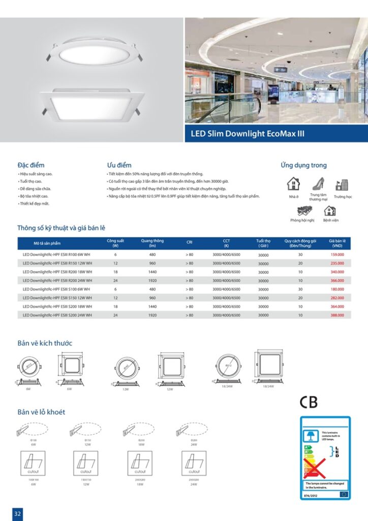 – Bảng giá đèn led Paragon