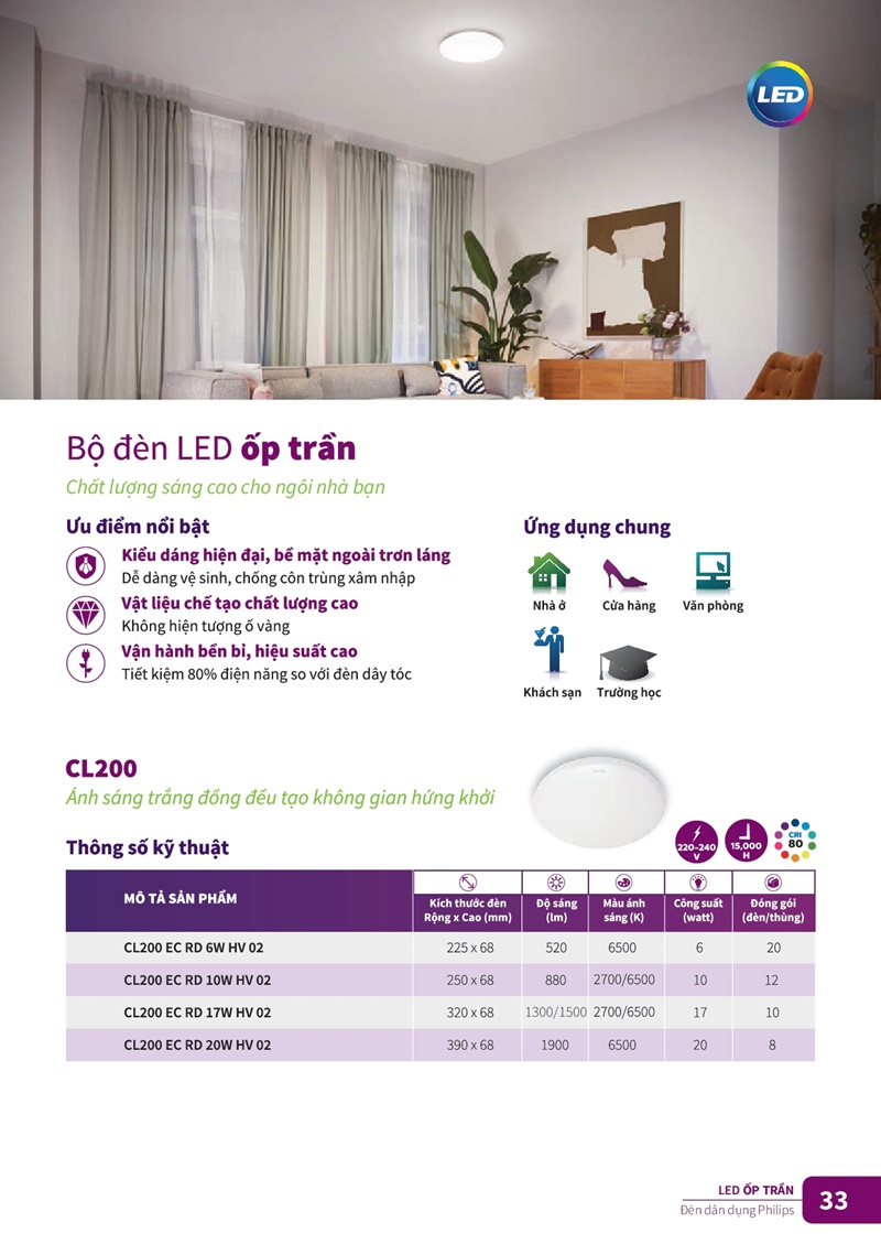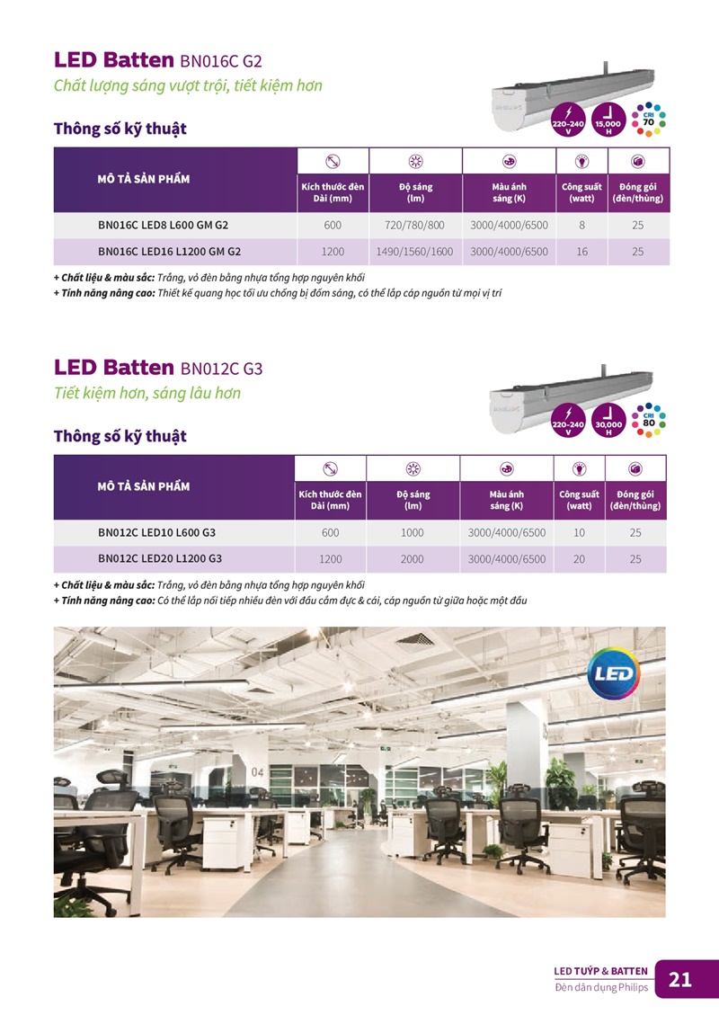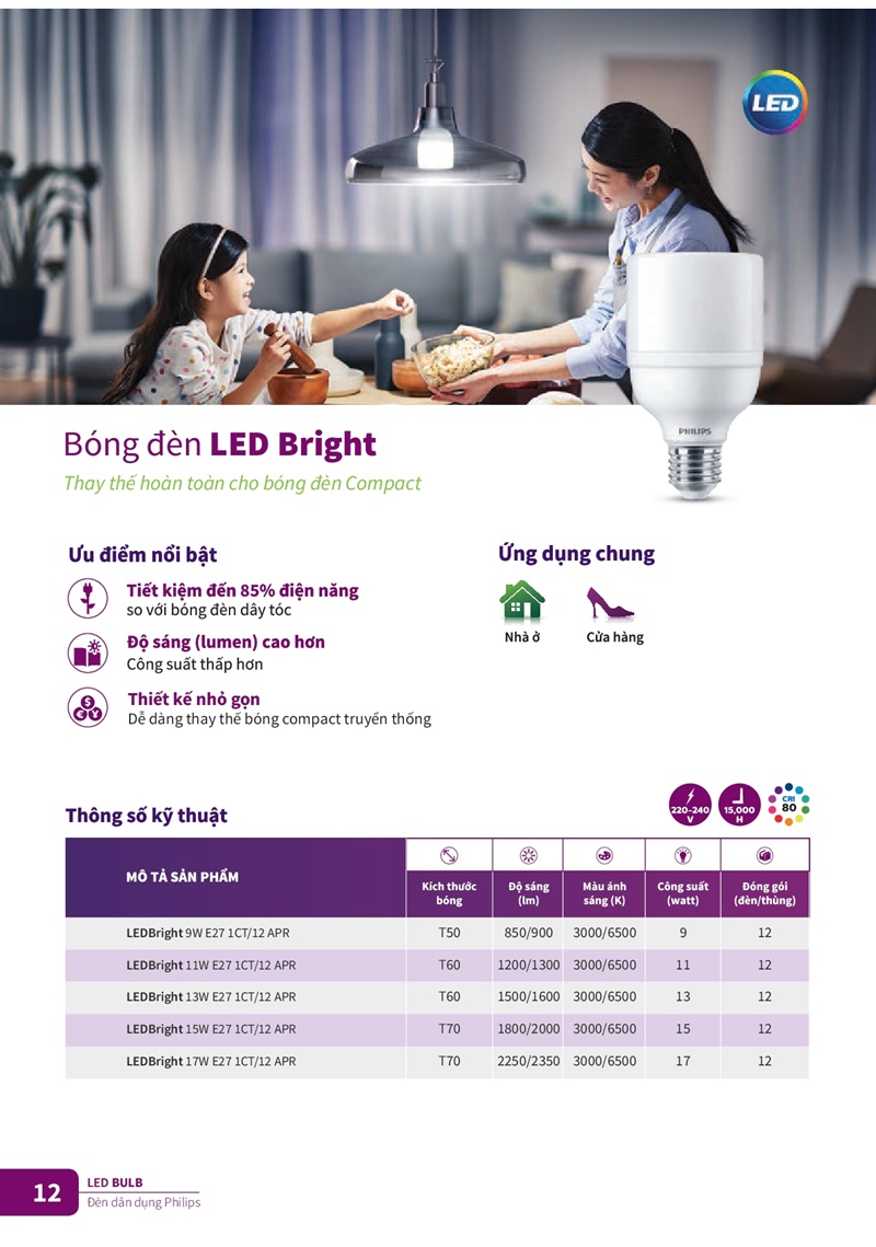 - Tuổi thọ cao: Đèn LED Philips thường có tuổi thọ dài, giảm chi phí thay thế và bảo dưỡng.