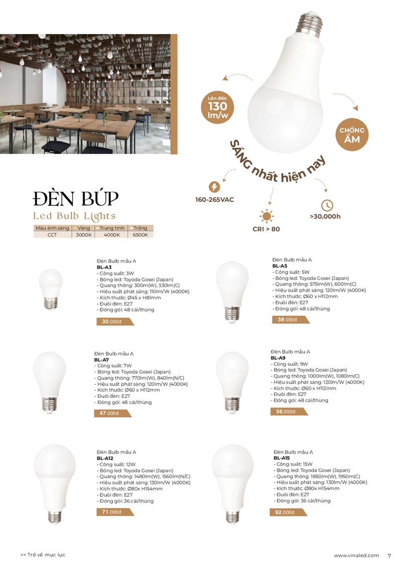 Bảng báo giá đèn LED VinaLED mang lại nhiều lựa chọn cho người tiêu dùng, đánh giá là sản phẩm chất lượng cao của Việt Nam.