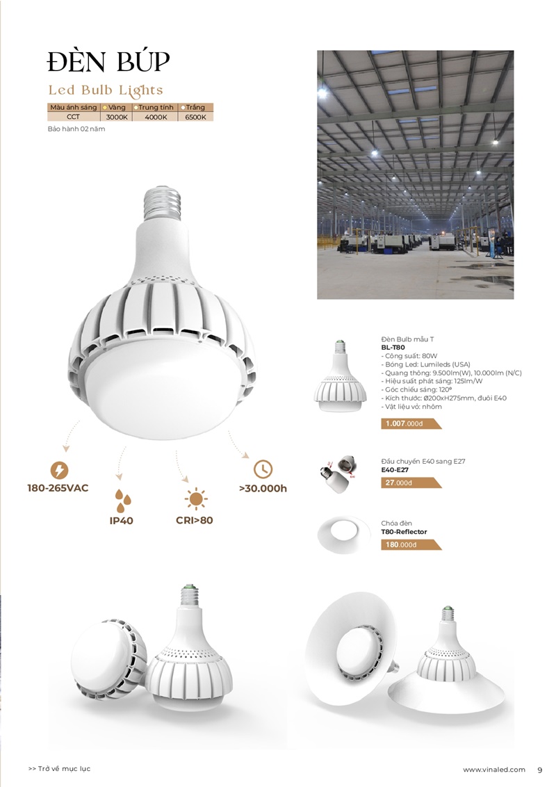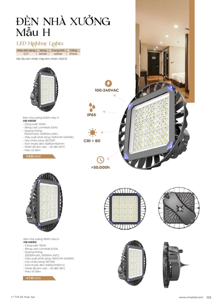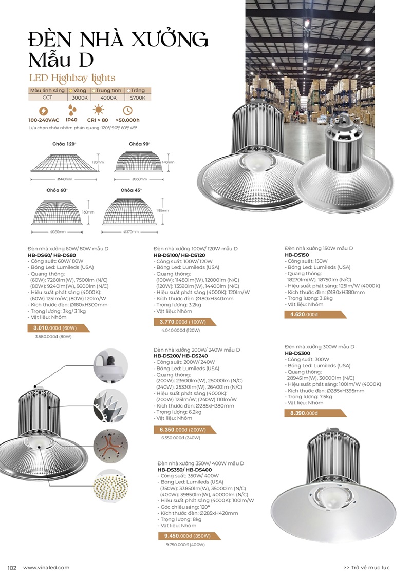 - Đèn Nhà Xưởng: Công suất lớn lên đến 400W, bảo hành 5 năm.