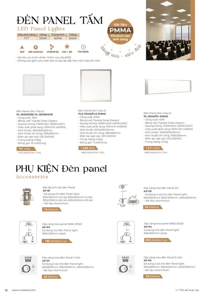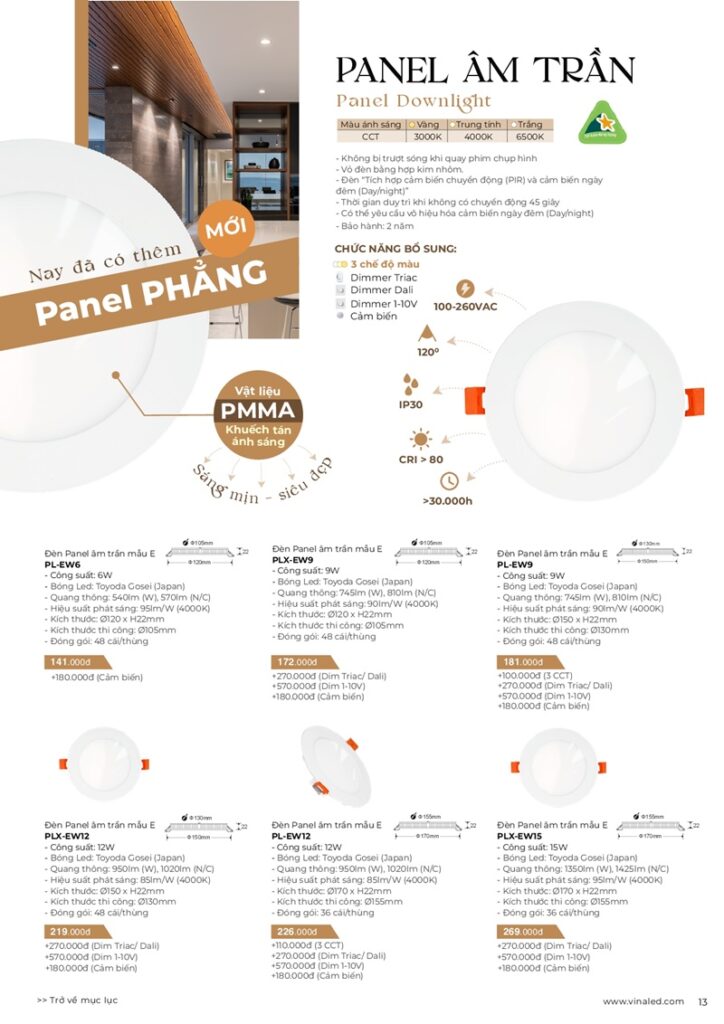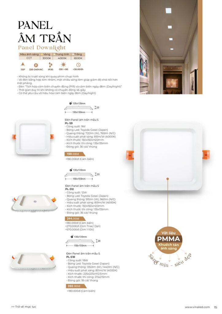 - Đèn Panel VinaLED: Sang trọng với nhiều kiểu dáng.
