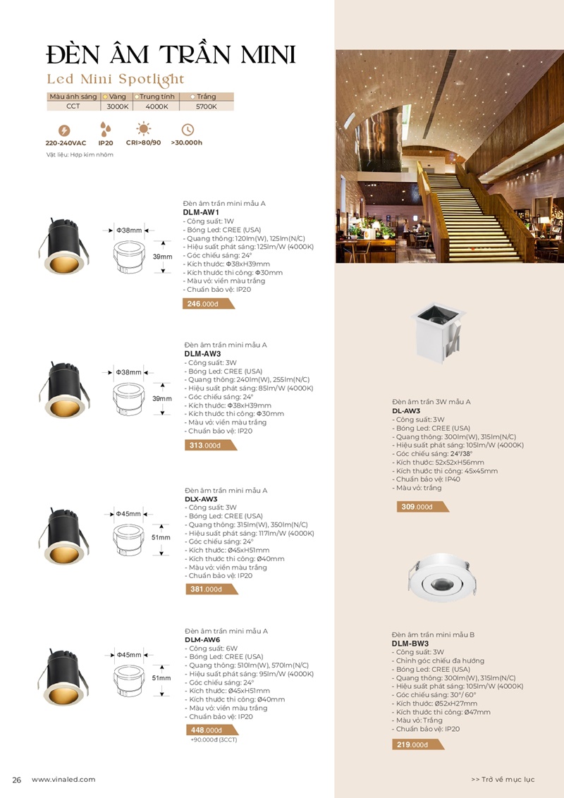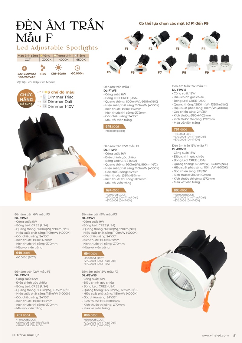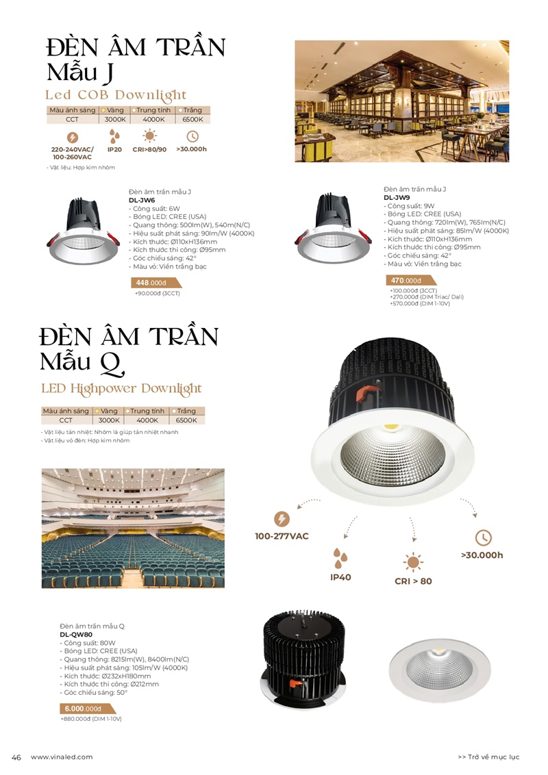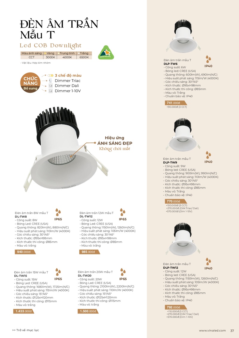 - Đèn Âm Trần VinaLED: Sử dụng chip CREE (USA), OSRAM, và BridgeLux (USA).