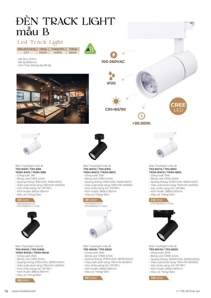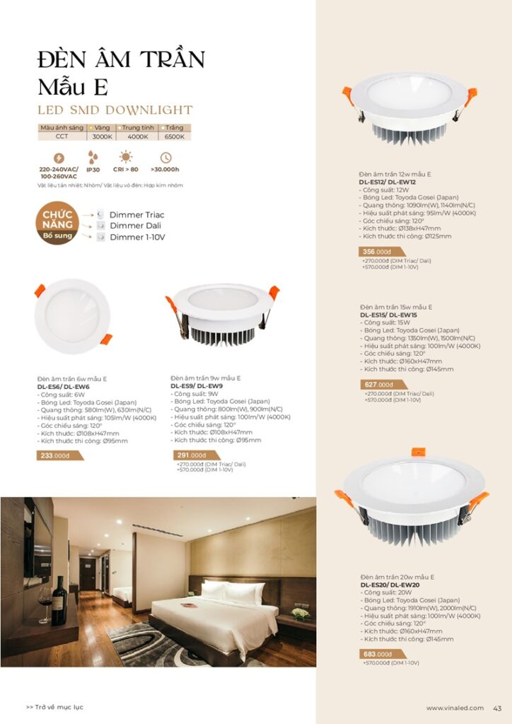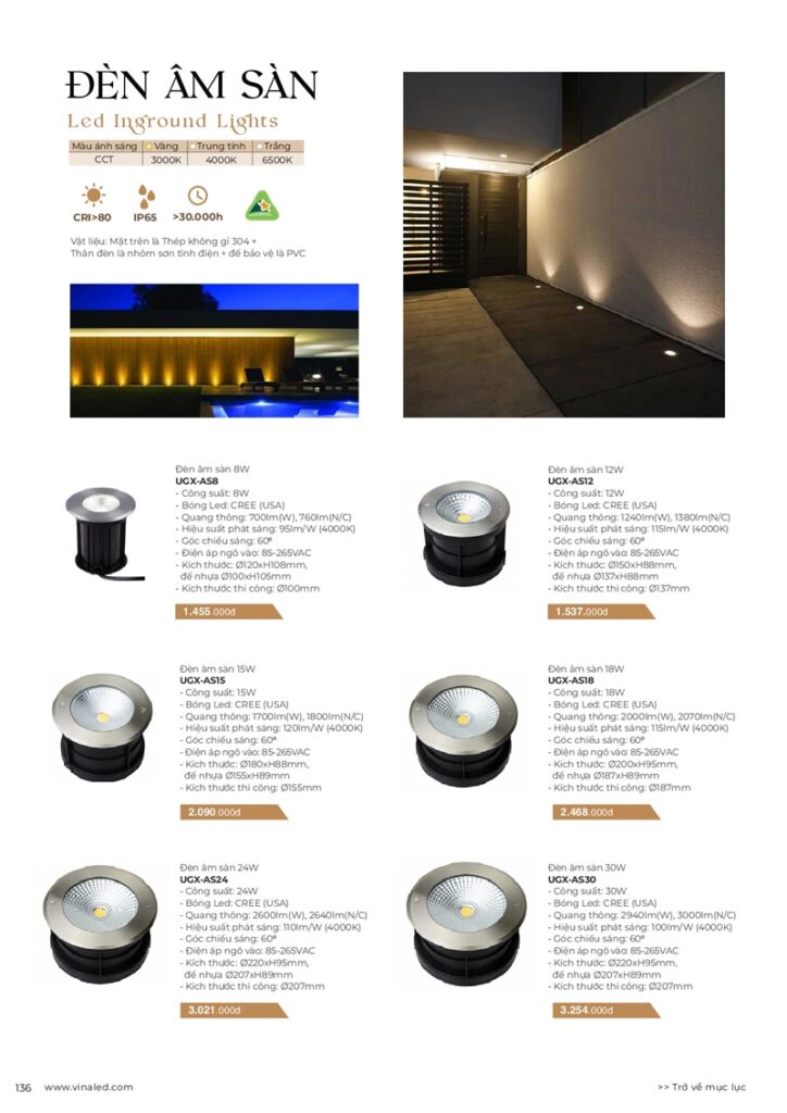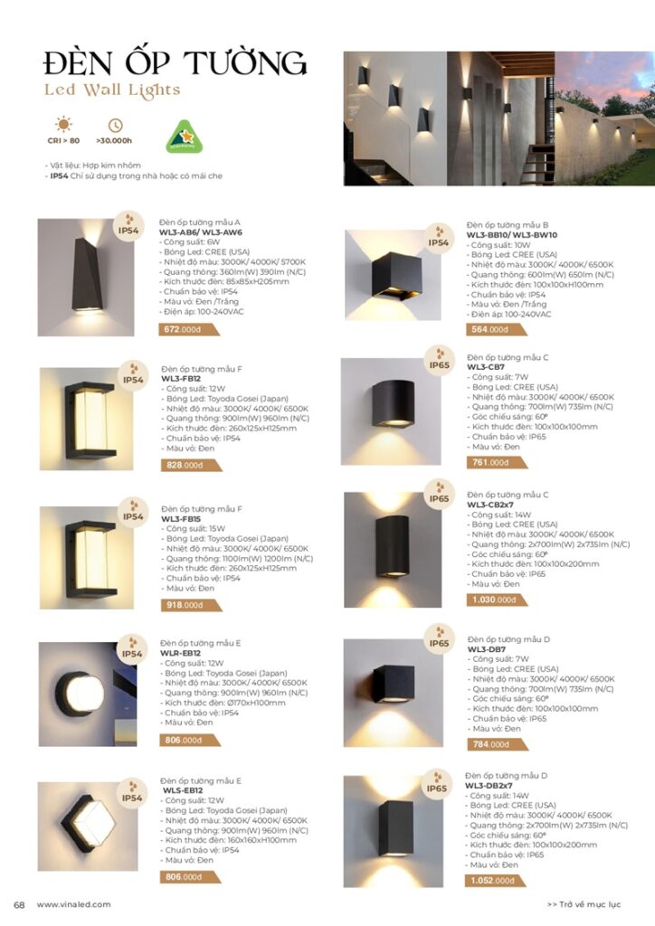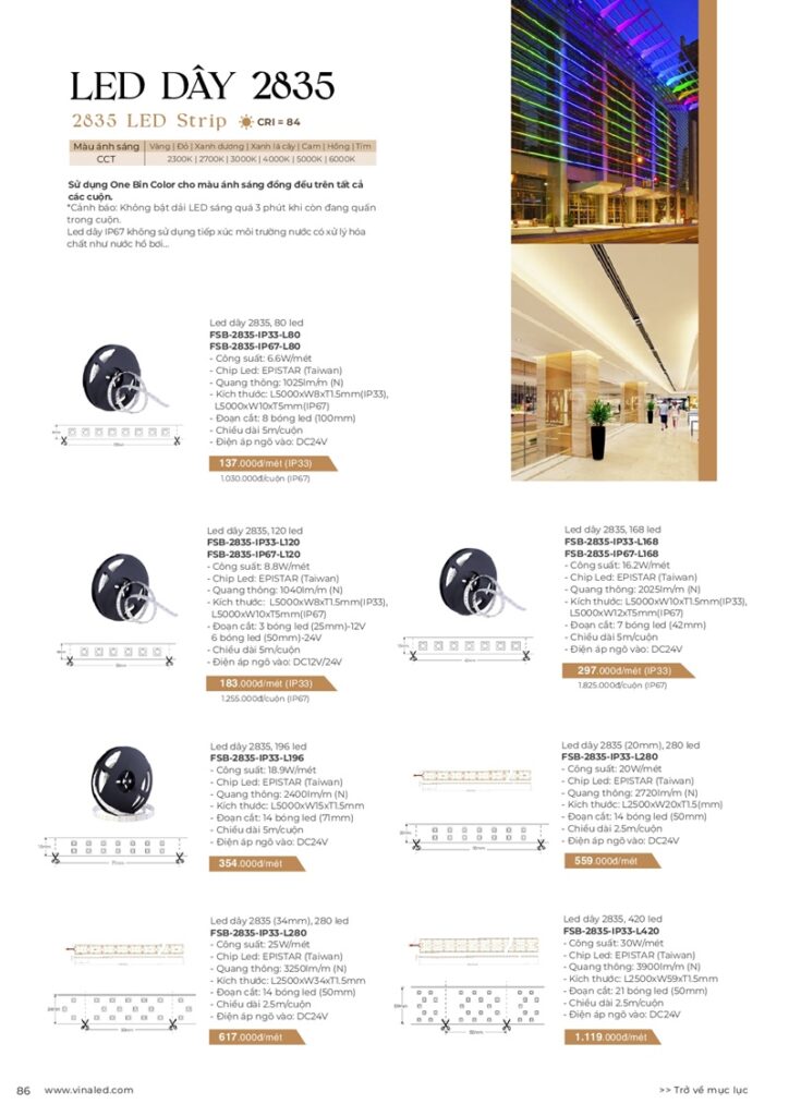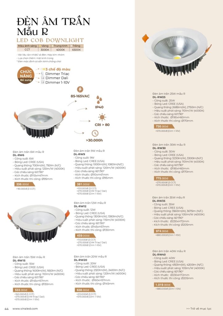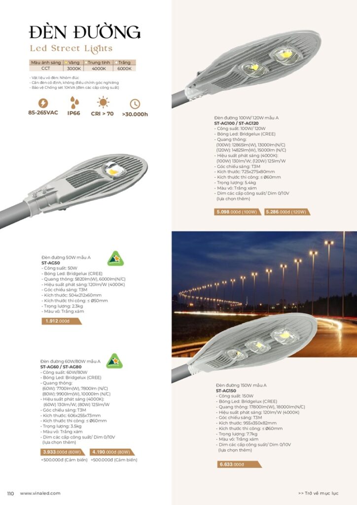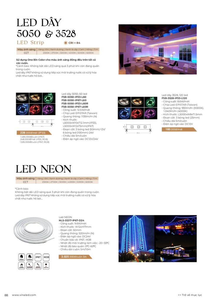Bảng giá đèn led Vinaled hình ảnh và thông số kỹ thuật