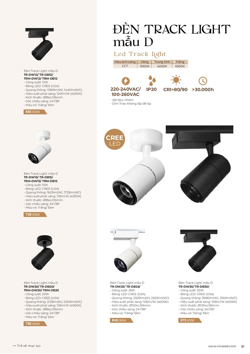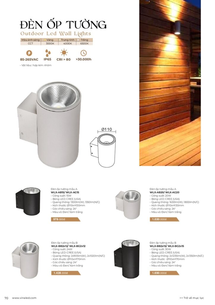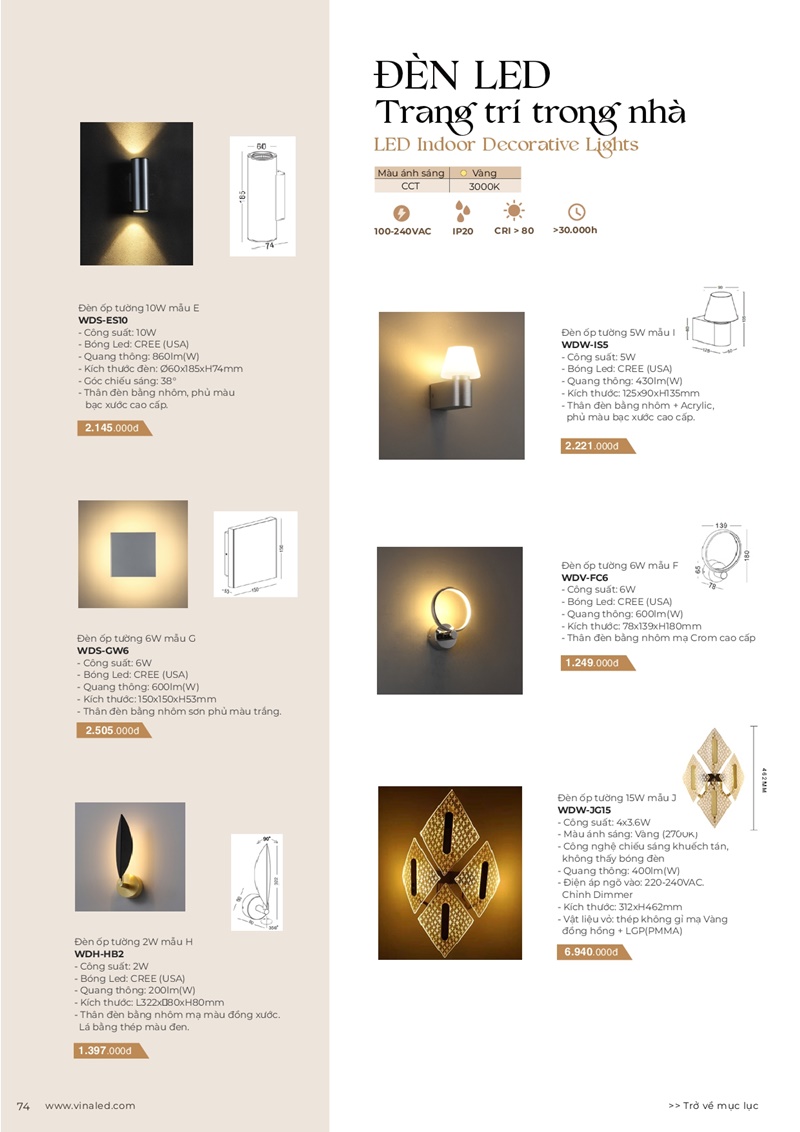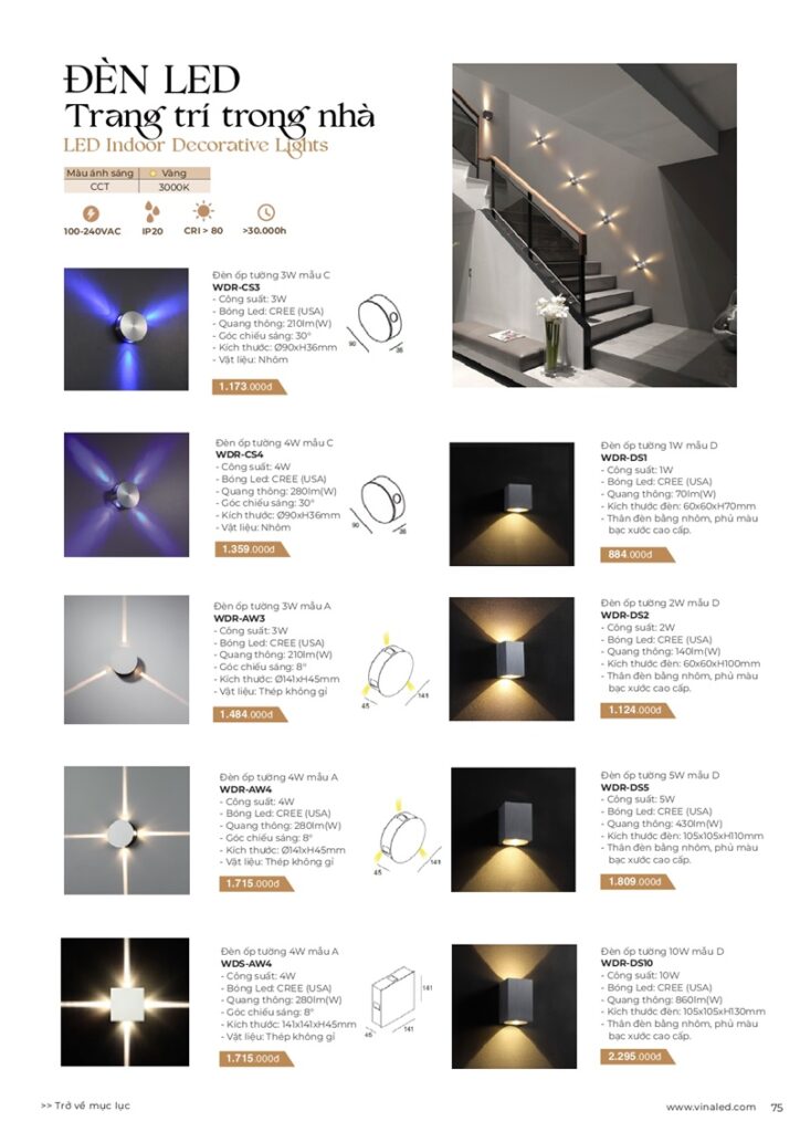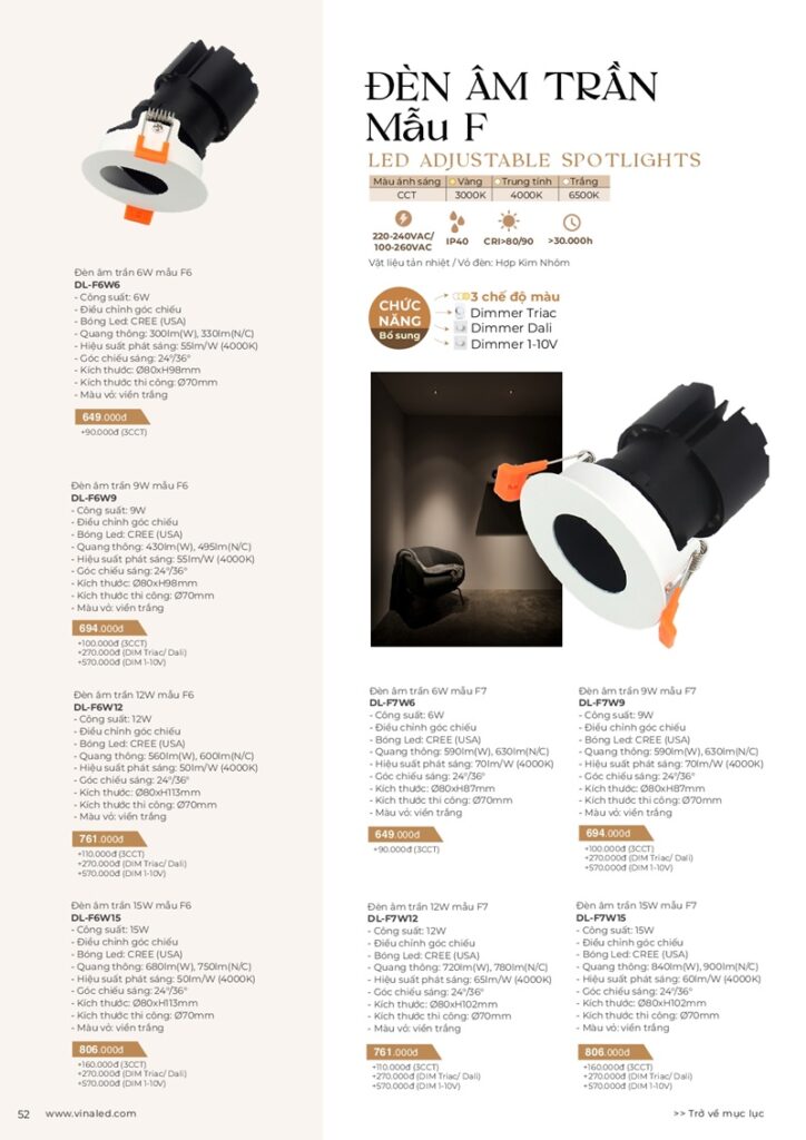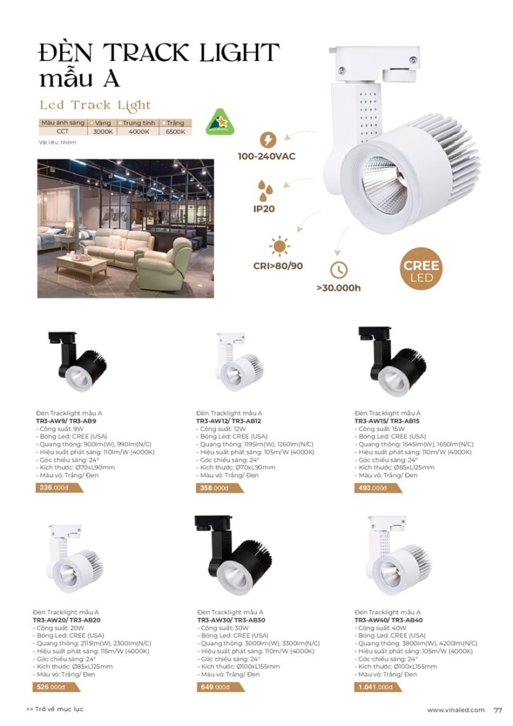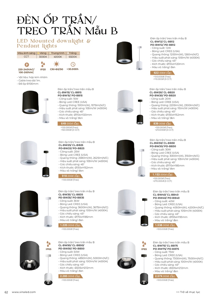 Bảng giá đèn led Vinaled hình ảnh và thông số kỹ thuật