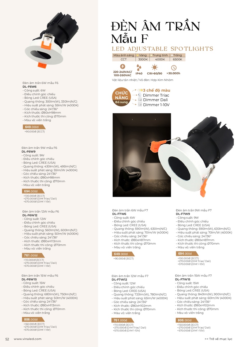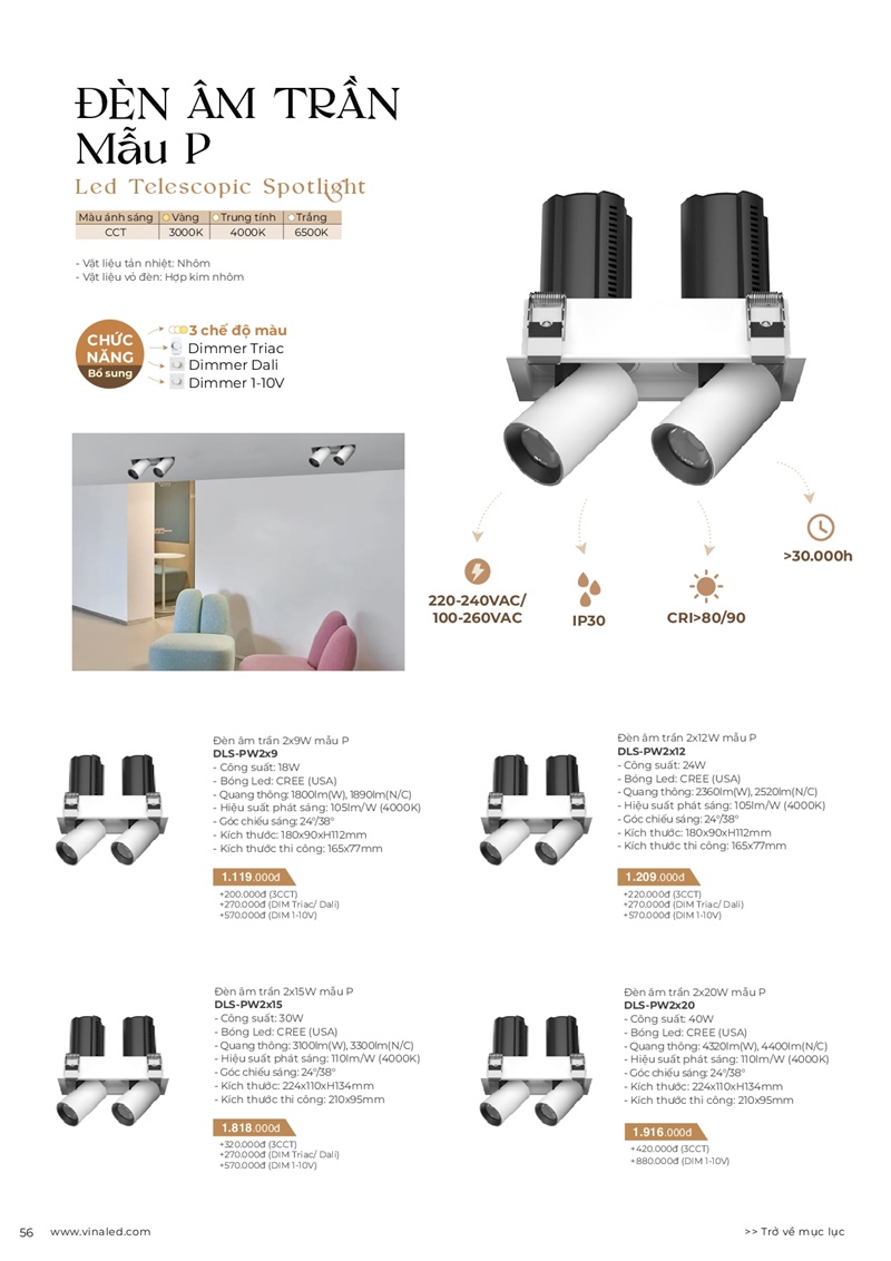 - Led Dimmer: Điều chỉnh độ sáng linh hoạt theo nhu cầu sử dụng.