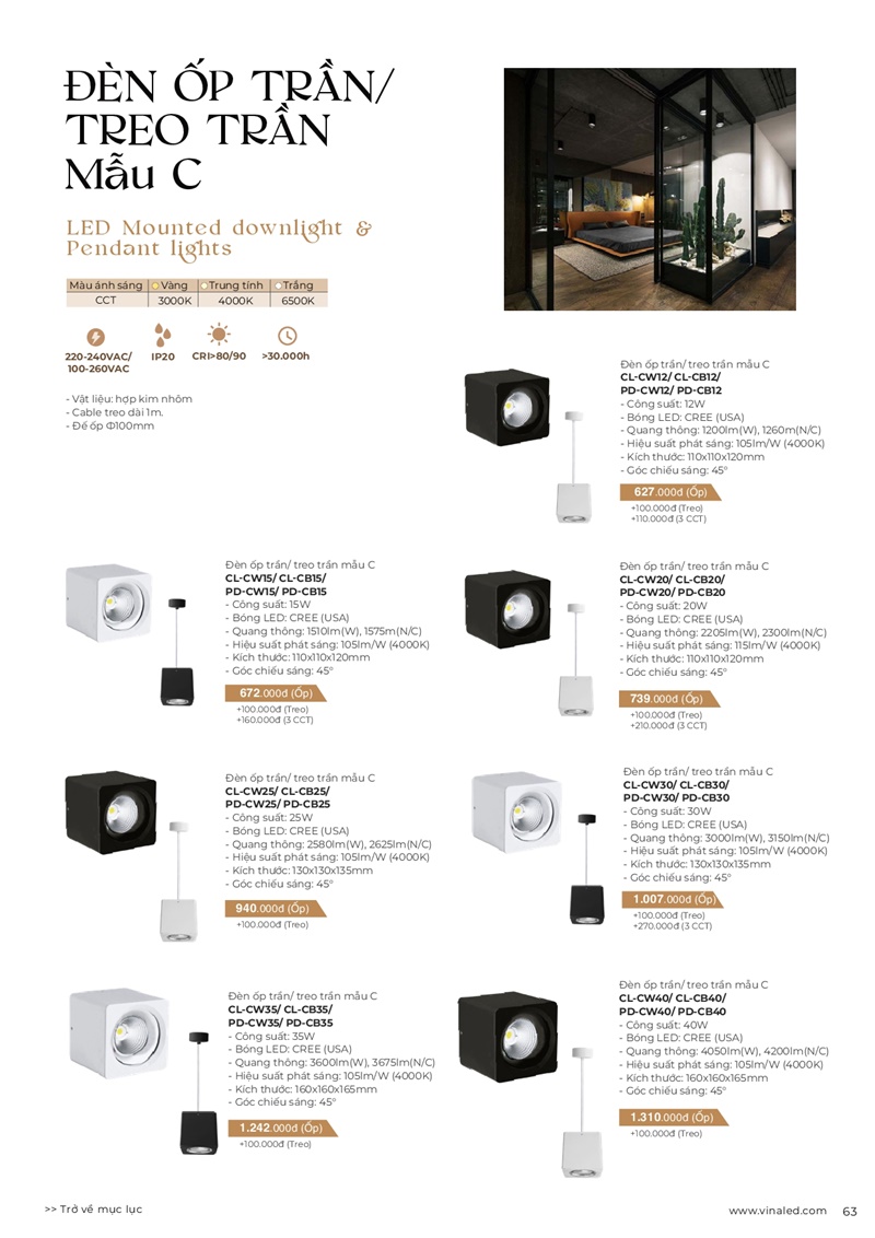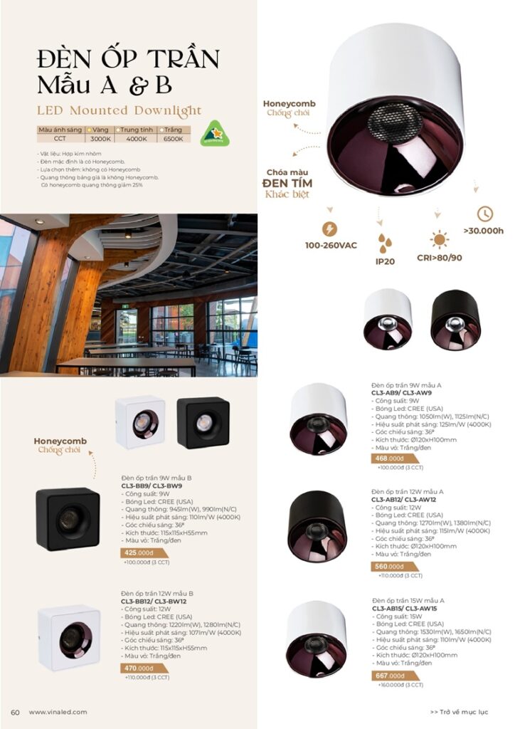Các loại đèn chất lượng cao khác của VinaLED bao gồm: