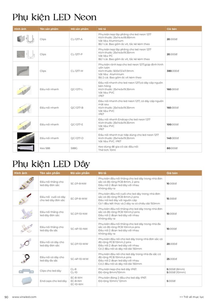 Xem trực tiếp trên web bảng giá đèn led Vinaled