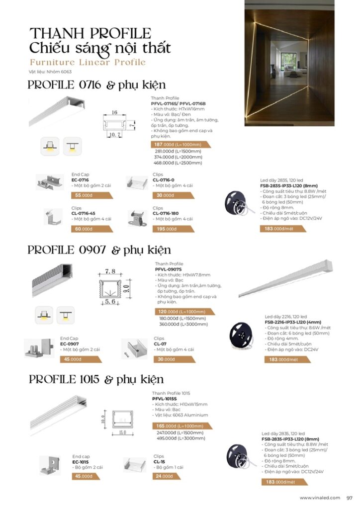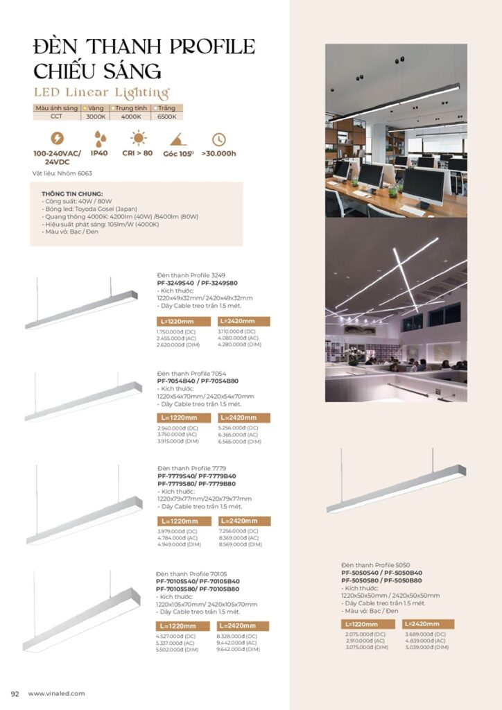- Đèn Thanh Profile: Linh hoạt với điện áp xoay chiều và một chiều.