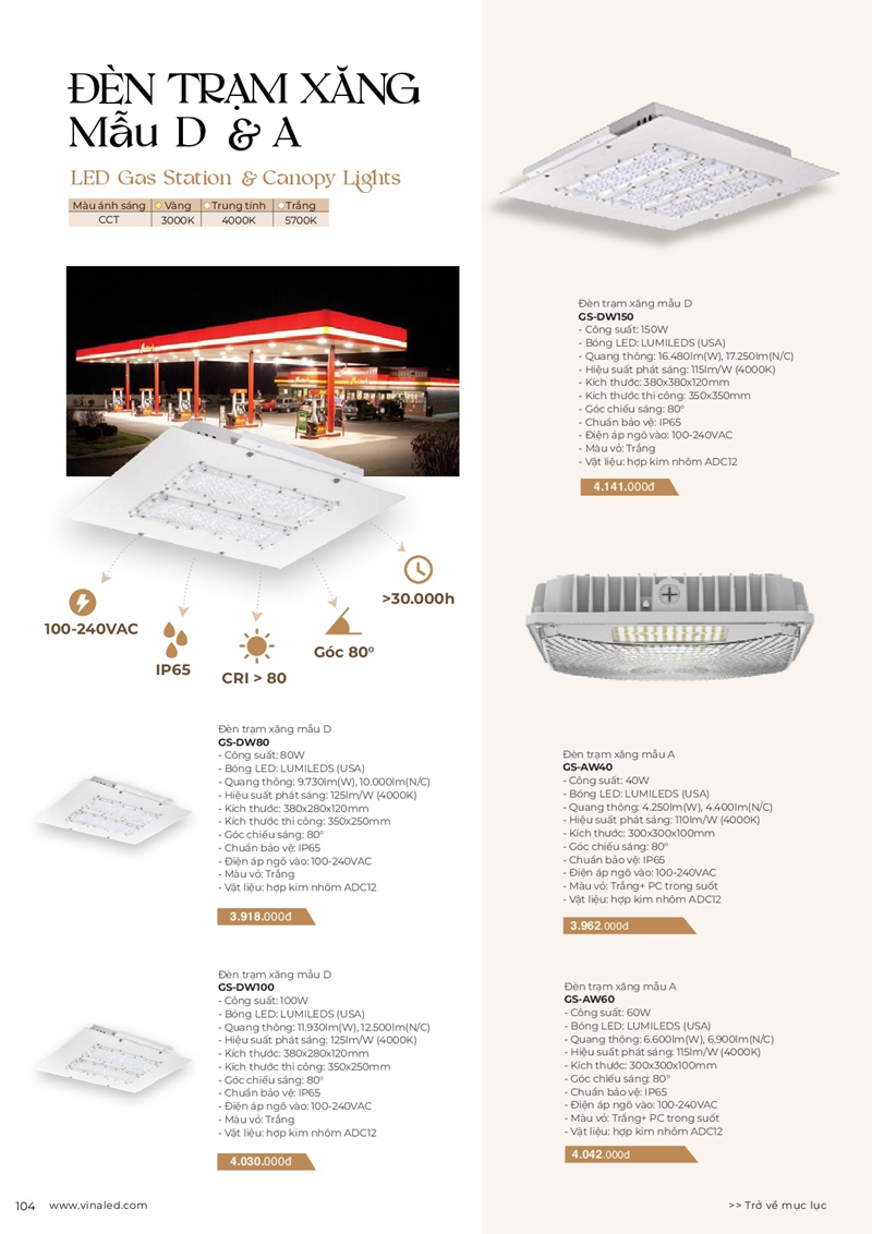 - Đèn Trạm Xăng: Chống bụi, an toàn và thân thiện với môi trường.