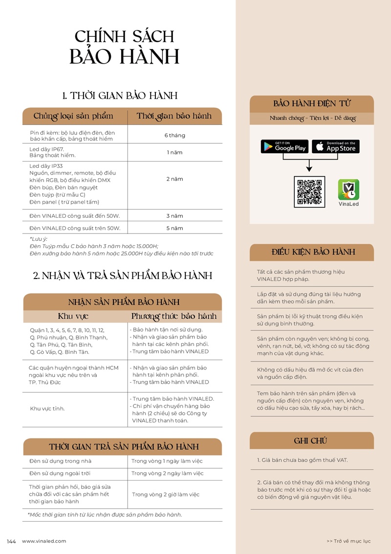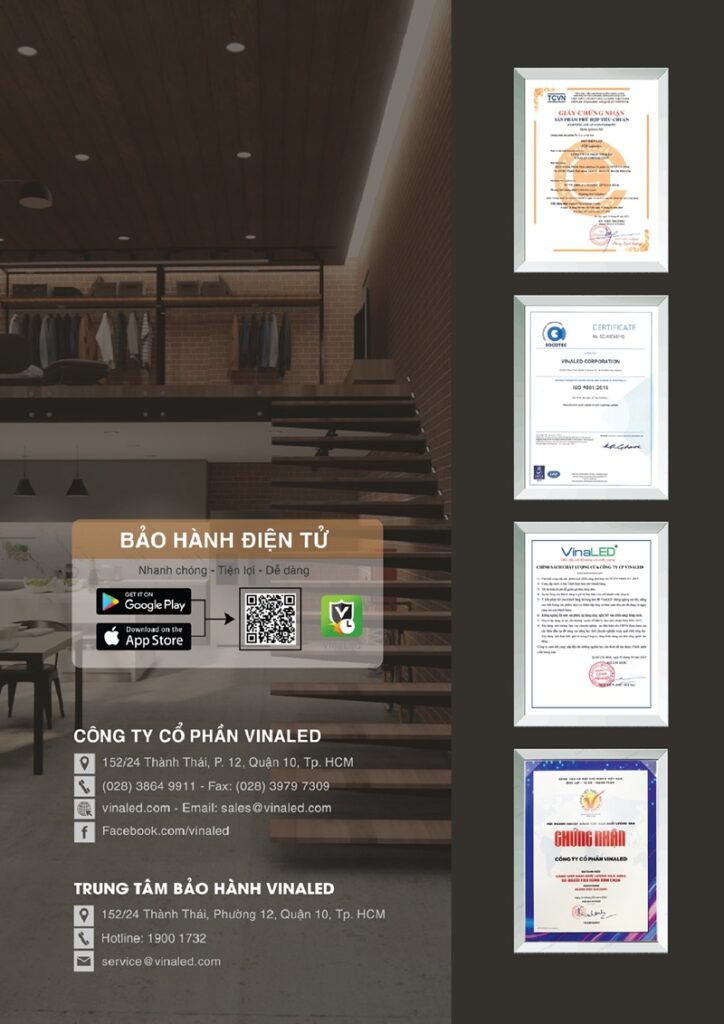 - Bảo Hành Lên Đến 5 Năm: Với cam kết chất lượng, VinaLED bảo hành sản phẩm lên đến 5 năm.