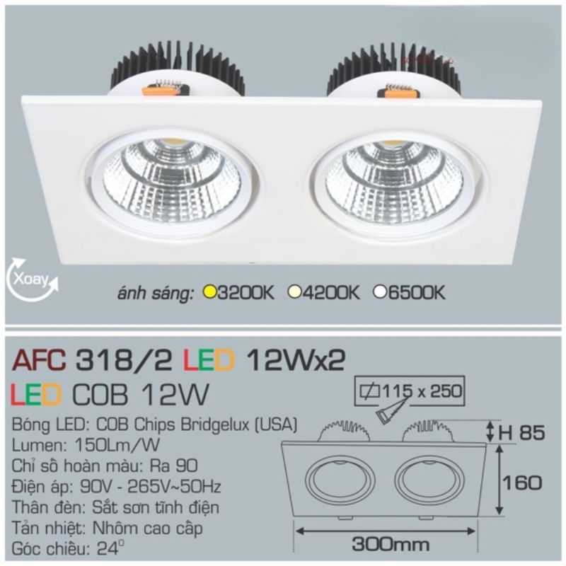 Tổng quan về đèn downlight AFC 318/2 LED 12W Anfaco