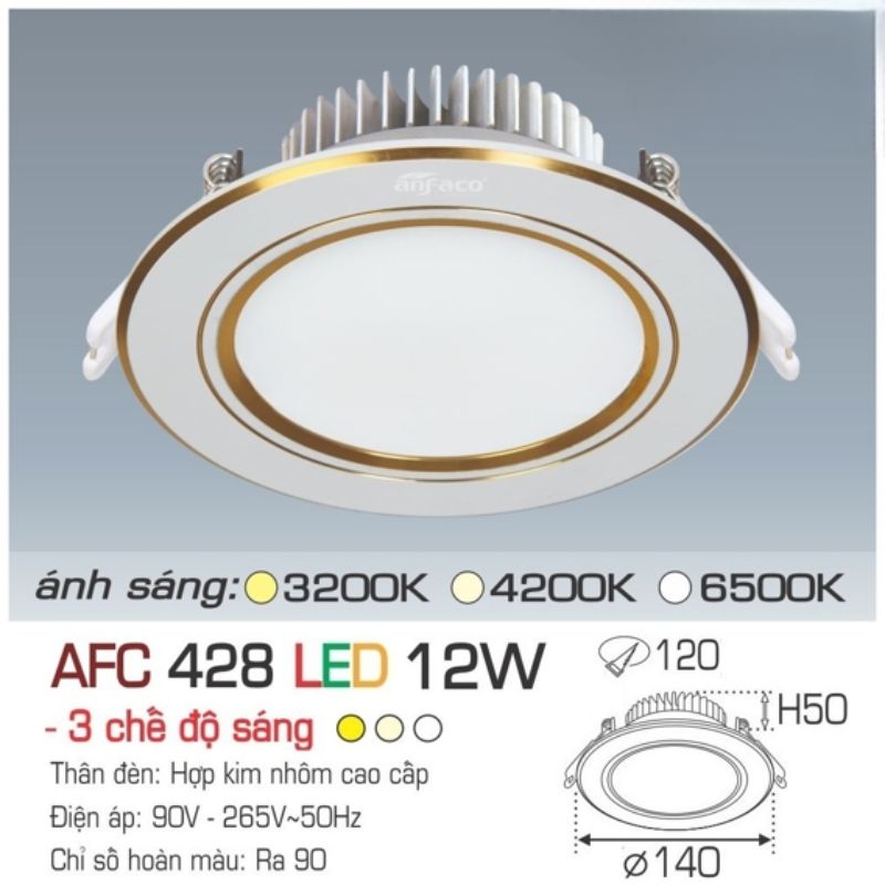 ĐÈN DOWNLIGHT ÂM TRẦN AFC 428 LED 12W ANFACO – GIẢI PHÁP CHIẾU SÁNG ĐA NĂNG 3 CHẾ ĐỘ MÀU