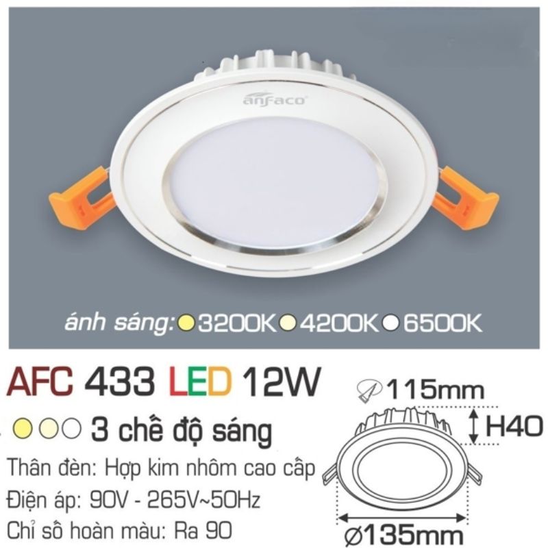 ĐÈN LED ÂM TRẦN AFC 433 LED 12W ANFACO – ÁNH SÁNG HOÀN HẢO 3 CHẾ ĐỘ MÀU