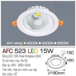 Dưới đây là các thông số kỹ thuật tiêu chuẩn của model AFC 523 LED 15W, khẳng định đẳng cấp của dòng đèn công suất cao: