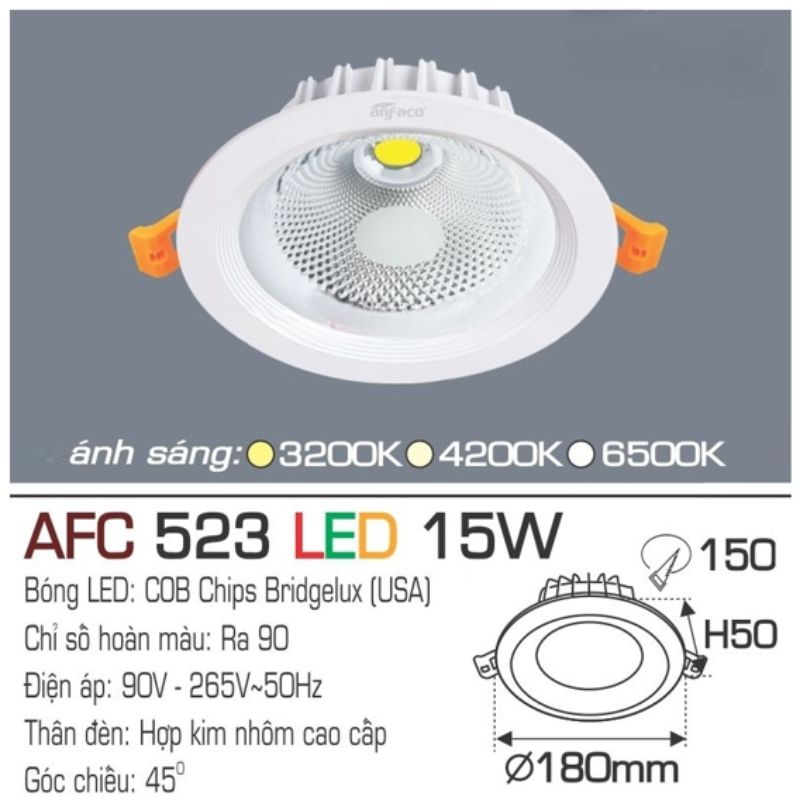 Đèn LED Âm Trần AFC 523 LED 15W Anfaco – Ánh Sáng Mạnh Mẽ Cho Không Gian Rộng