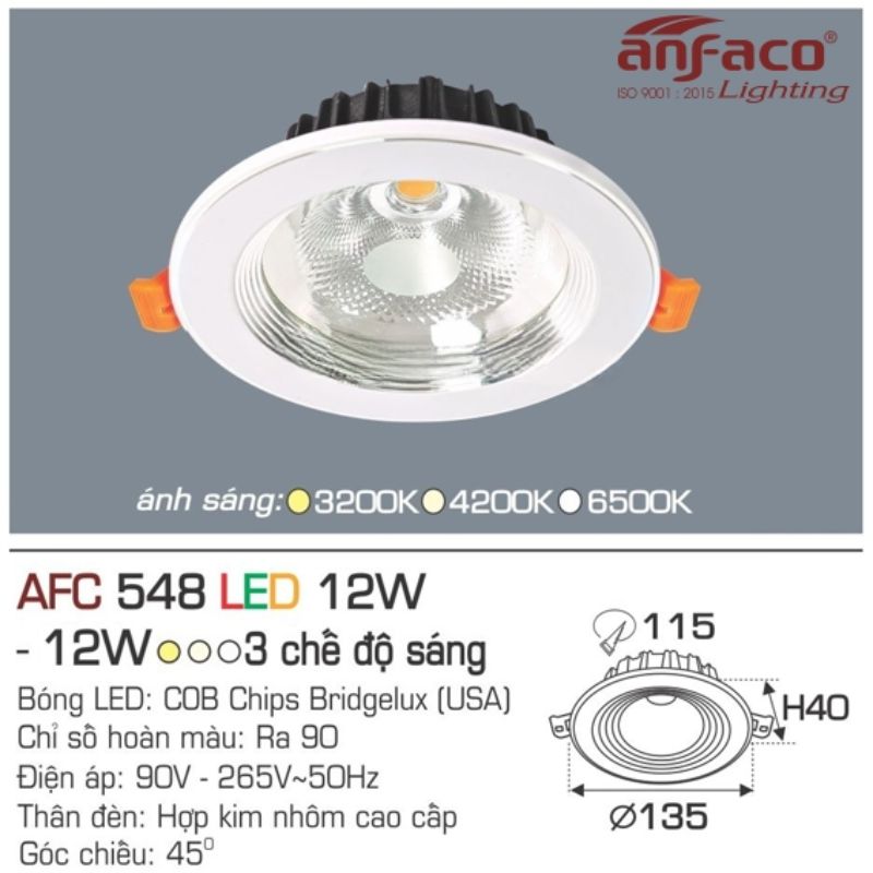 ĐÈN LED DOWNLIGHT ÂM TRẦN AFC 548 LED 12W ANFACO – CHIẾU SÁNG THÔNG MINH 3 CHẾ ĐỘ MÀU