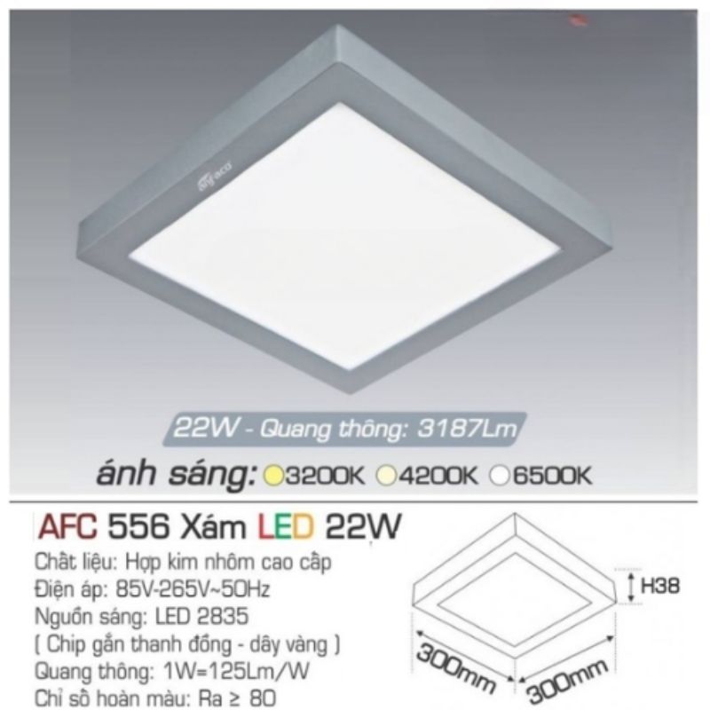 độ dày của đèn AFC 556 Xám 22W]