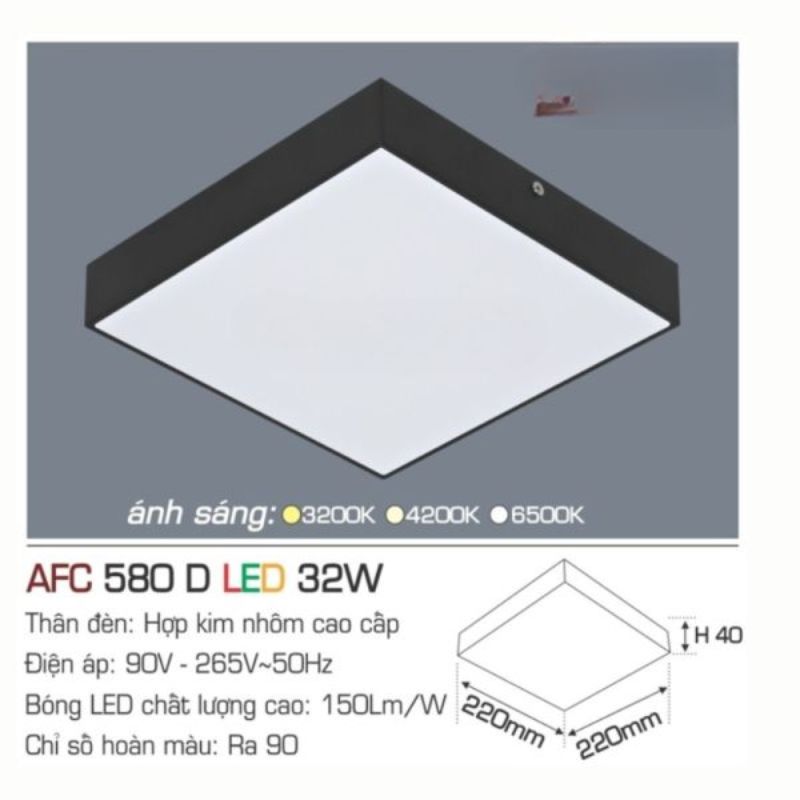 Dưới đây là bảng thông số kỹ thuật chi tiết của sản phẩm AFC 580 D LED 32W, giúp quý khách hàng dễ dàng so sánh và lựa chọn sản phẩm phù hợp với nhu cầu: