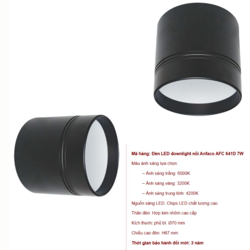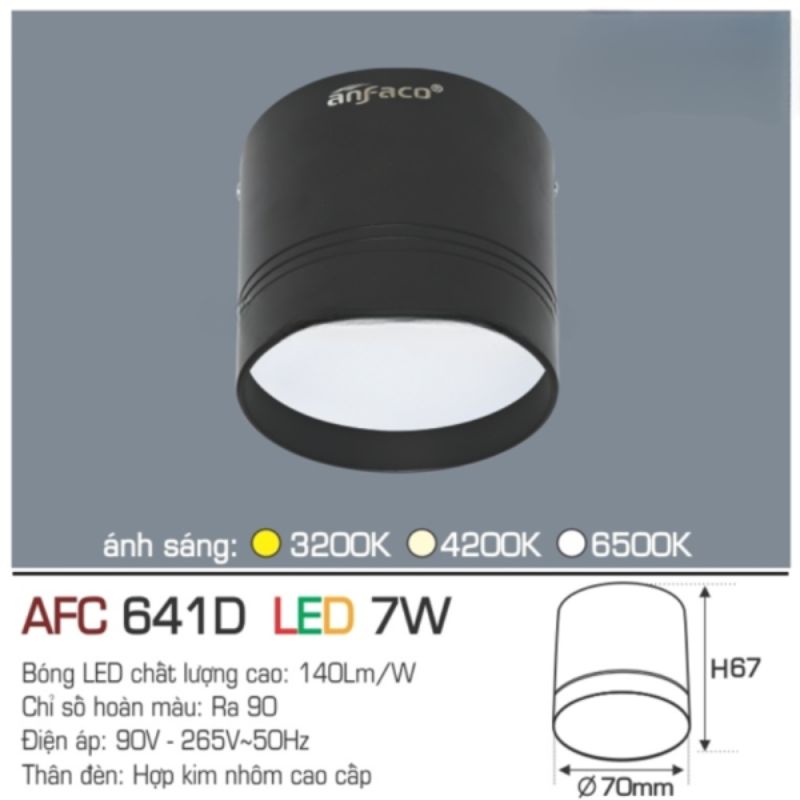 Dưới đây là các thông số quan trọng nhất của đèn AFC 641 D LED 7W giúp bạn dễ dàng đối chiếu với nhu cầu thiết kế: