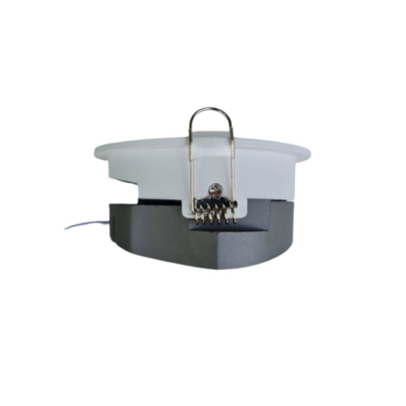 - Bước 3: Đẩy tai lò xo kẹp hướng lên trên, đưa thân đèn vào lỗ khoét và thả nhẹ để kẹp chặt vào trần.