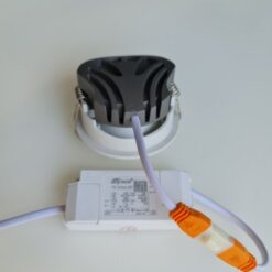 - Hệ thống tản nhiệt ưu việt: Hợp kim nhôm đúc giúp thoát nhiệt nhanh, đảm bảo chip LED Bridgelux bền bỉ, không làm nóng không gian và giữ trần thạch cao luôn sạch đẹp.