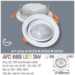Dưới đây là bảng thông số kỹ thuật của model AFC 689 LED 3W, sự kết hợp hoàn hảo giữa kích thước mini và hiệu năng mạnh mẽ: