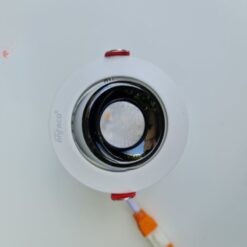- Bước 3: Đẩy tai kẹp lò xo lên phía trên, đưa đèn vào lỗ khoét và thả tay để tai kẹp giữ chặt đèn vào bề mặt trần.