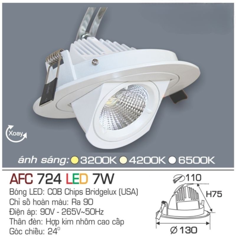 Đèn LED Âm Trần AFC 724 LED 7W Anfaco – Chiếu Điểm Linh Hoạt, Ánh Sáng Trung Thực