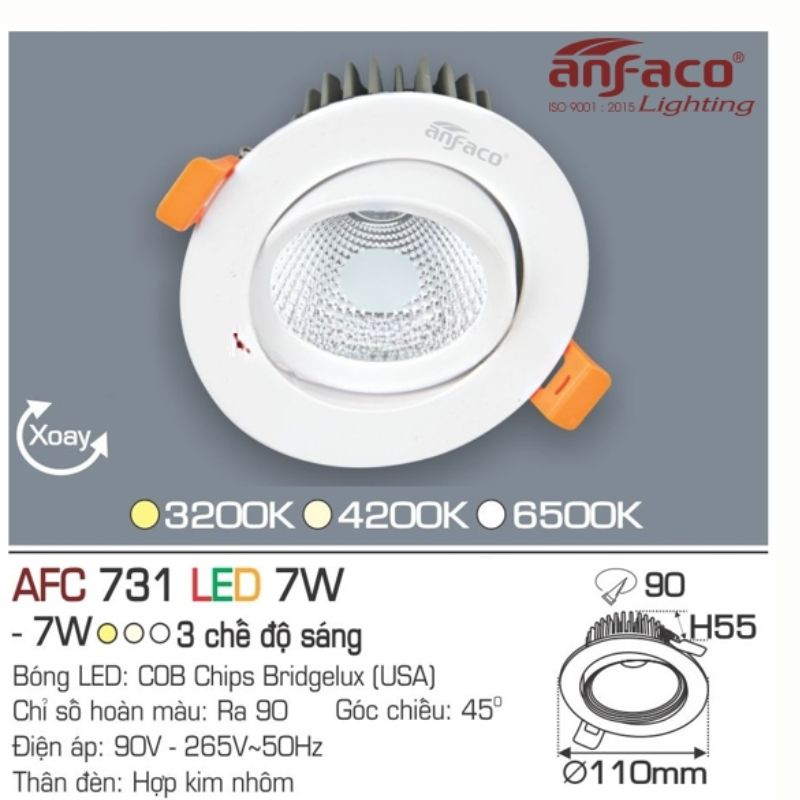 ĐÈN LED ÂM TRẦN AFC 731 LED 7W ANFACO – ÁNH SÁNG ĐIỂM NHẤN TINH TẾ & ĐẲNG CẤP