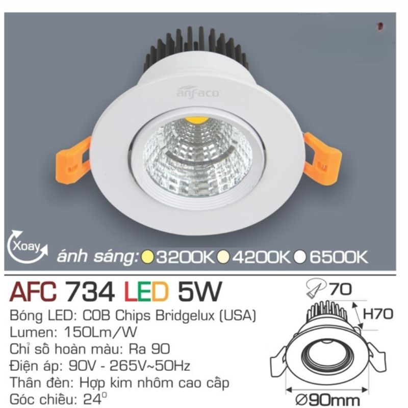 có cái nhìn tổng quan nhất về đèn LED âm trần AFC 734 5W,
