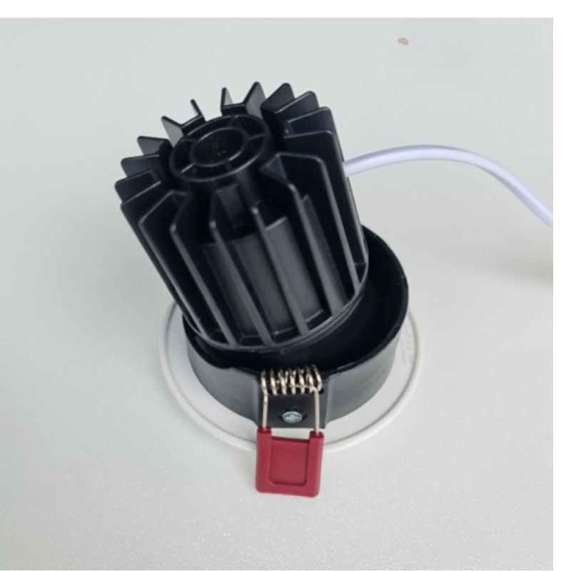 - Bước 3: Bóp nhẹ tai kẹp lò xo, đưa đèn vào lỗ khoét và điều chỉnh cho phẳng mặt trần.