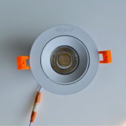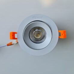 - Bước 3: Đẩy tai lò xo hướng lên trên, đưa đèn vào lỗ khoét và thả nhẹ để kẹp chặt vào trần. Điều chỉnh góc xoay theo nhu cầu.