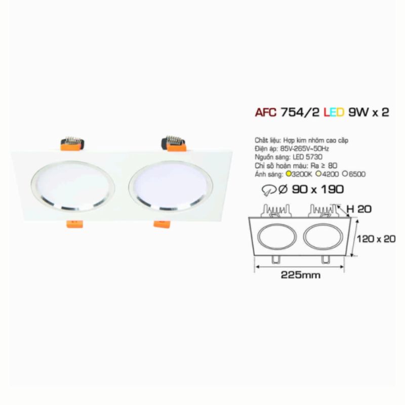 Thông Số Kỹ Thuật Chi Tiết Của Đèn LED Âm Trần Anfaco AFC 754/2 LED 9W 📊