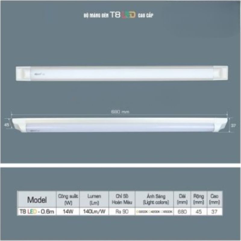bóng: LED T8 (Chiều dài phổ biến 0.6m hoặc tùy