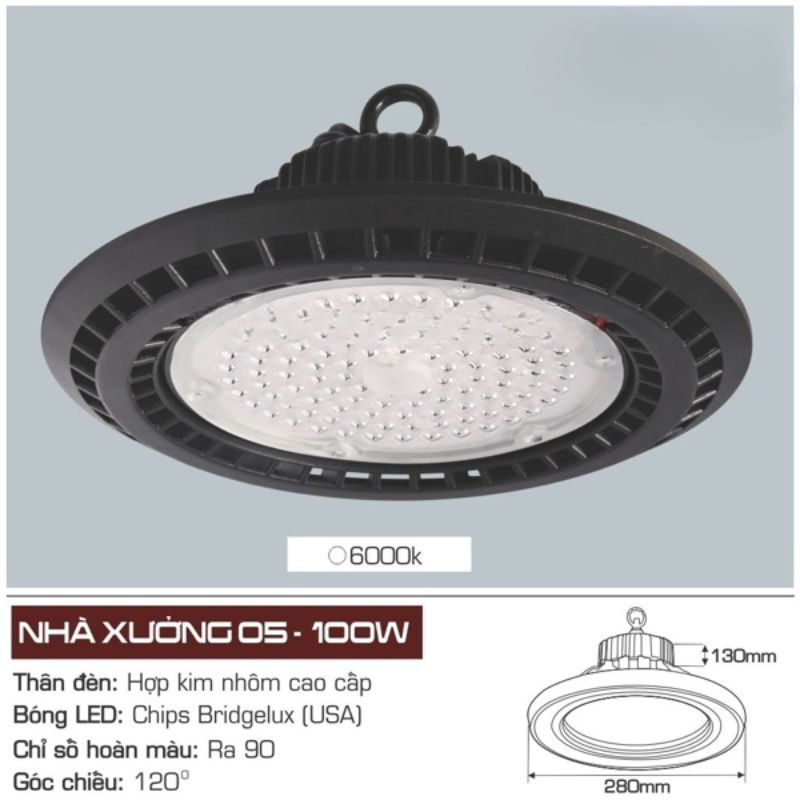 Thông thường, với công suất 100W và góc chiếu 120 độ, đèn đạt hiệu