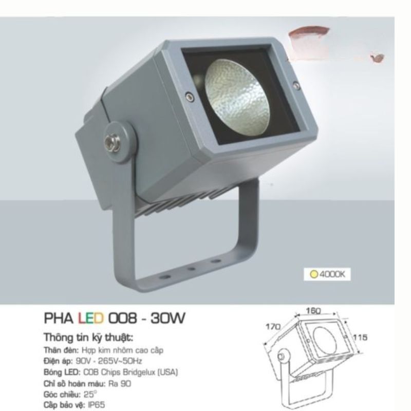 1. Đèn pha 30W phù hợp cho diện tích chiếu sáng bao nhiêu?