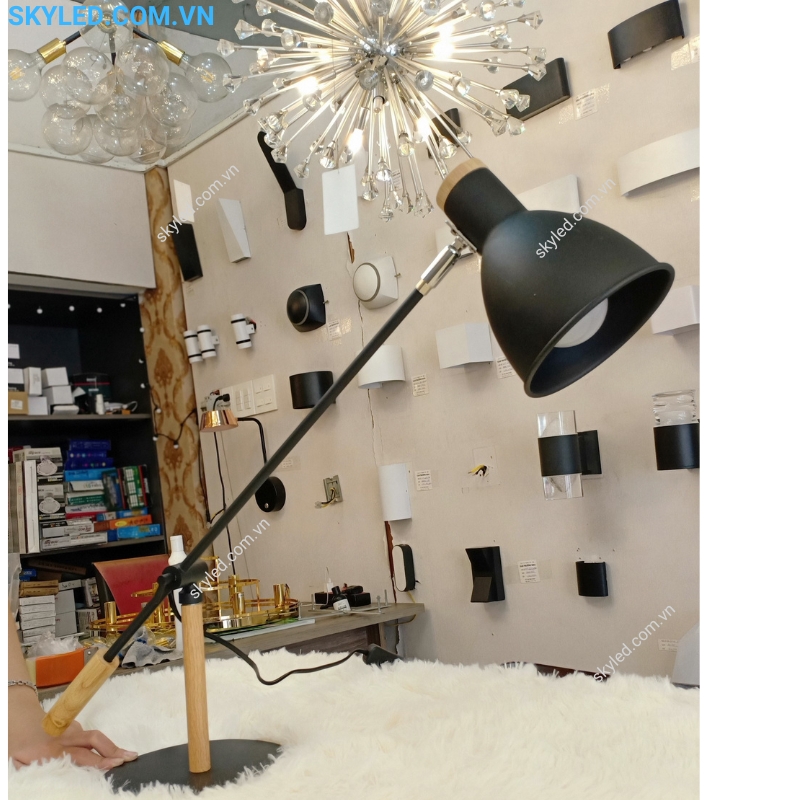 - Kiểu dáng: Đèn để bàn hiện đại, chân kim loại thanh mảnh.
