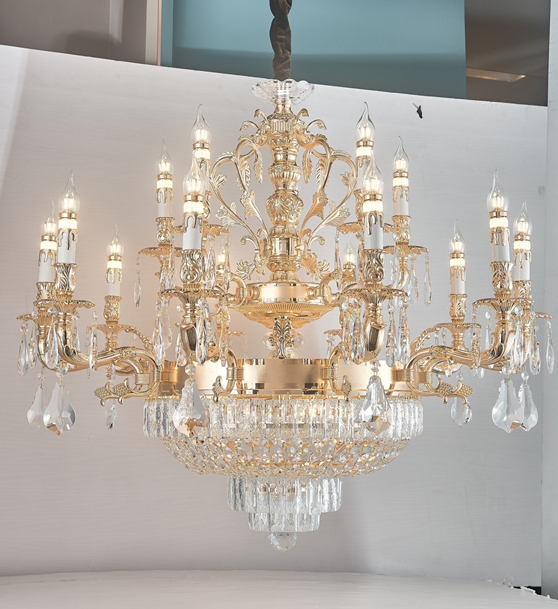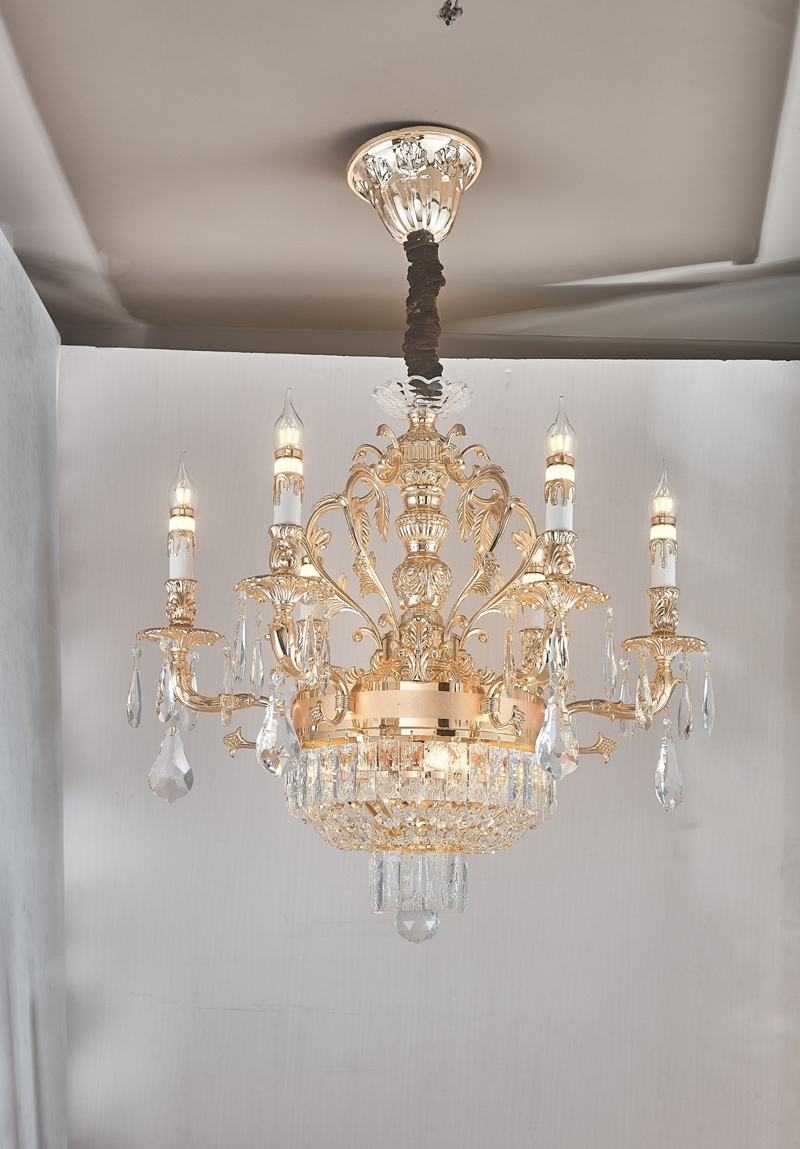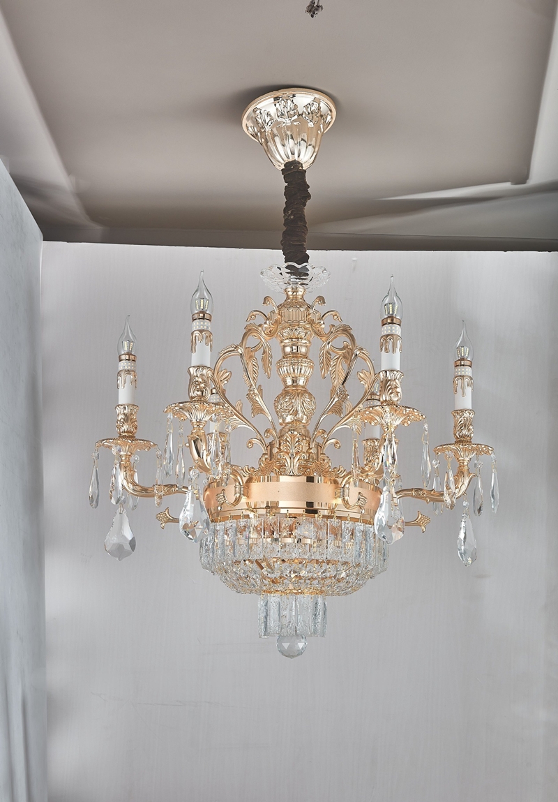 • Chất liệu: Thân hợp kim vàng + chao pha lê cao cấp 100