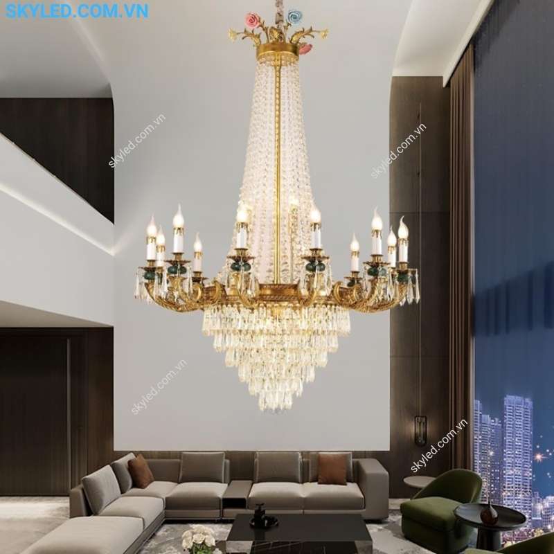 - Kiểu: Đèn chùm phòng khách, Đèn chùm phòng ăn, Đèn chùm phòng ngủ, đèn chùm sảnh.