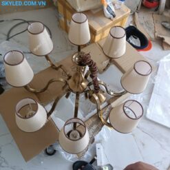 - Chất Liệu Bền Bỉ: Với thân đèn được làm từ hợp kim và chao vải cao cấp, đèn chùm này có độ bền cao và không bị phai màu theo thời gian.
