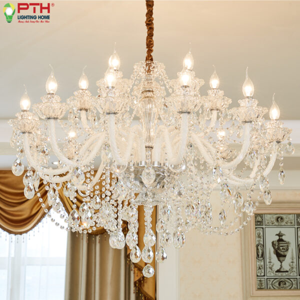 một tuyệt phẩm pha lê cao cấp với thiết kế 18 tay đèn sang trọng. Với đường